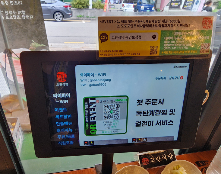 드라마 엄마친구아들 에서도 고반식당이 나왔었는지 배너가 있었고요 폭탄 계란찜이 기본 제공된다는 안내도 있었어요.