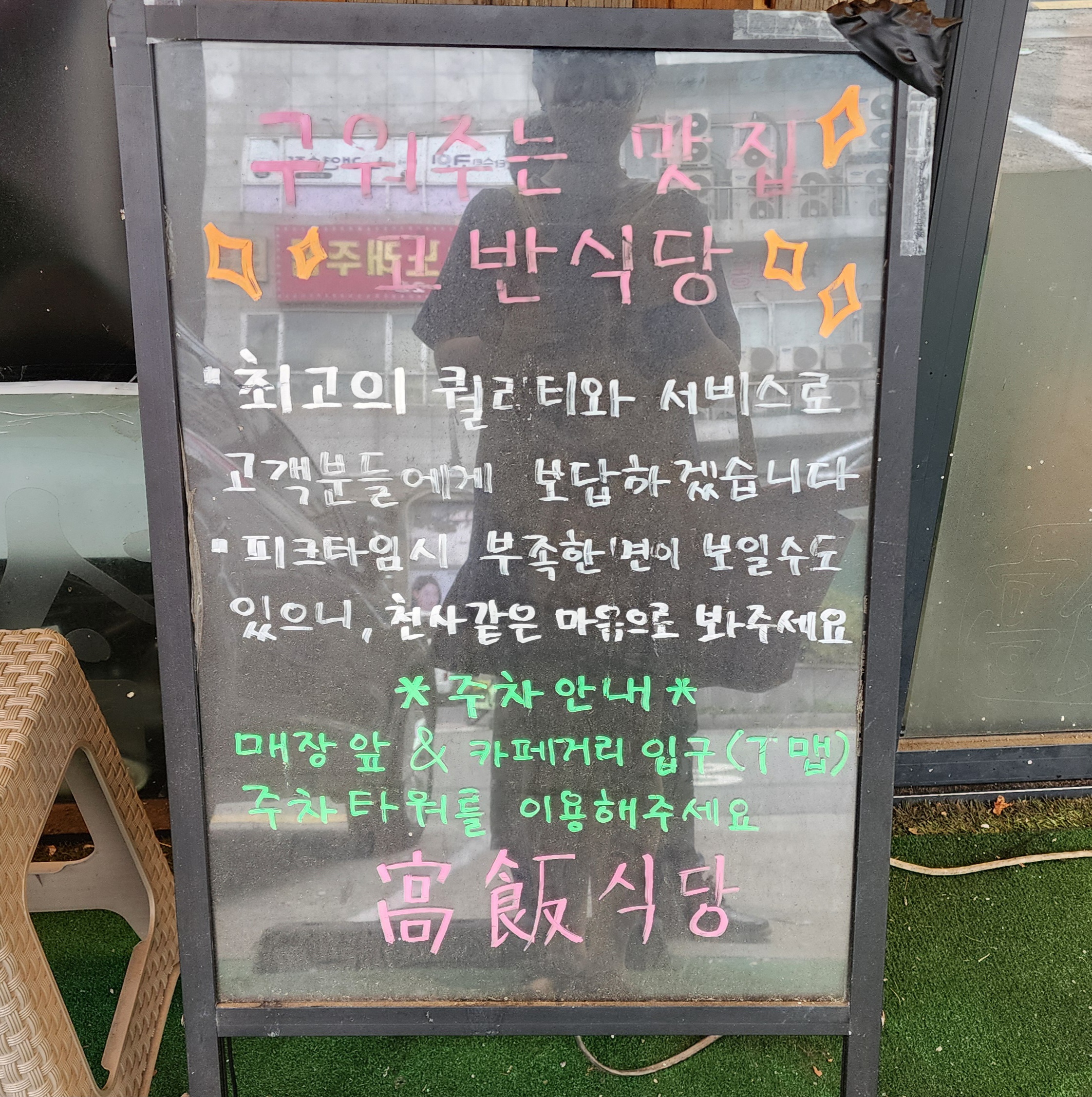 돼지고기 굽기전에 불판에 고사리를 구워주길래 고사리의 '고'에 밥 '반' 자 인가 했는데 훌륭한 식사를 뜻하는 높을'고'에 밥 '반'자를 쓴 식당 이름이더군요.