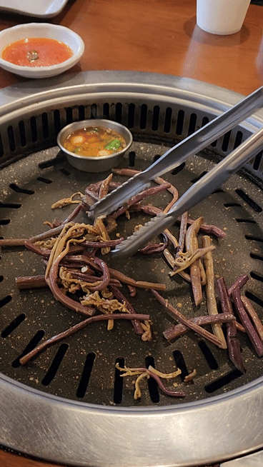 처음에 볶아진 고사리도 고기랑 같이 먹으면 맛있지만 겉절이가 돼지고기랑 정말 잘 어울리더라구요.