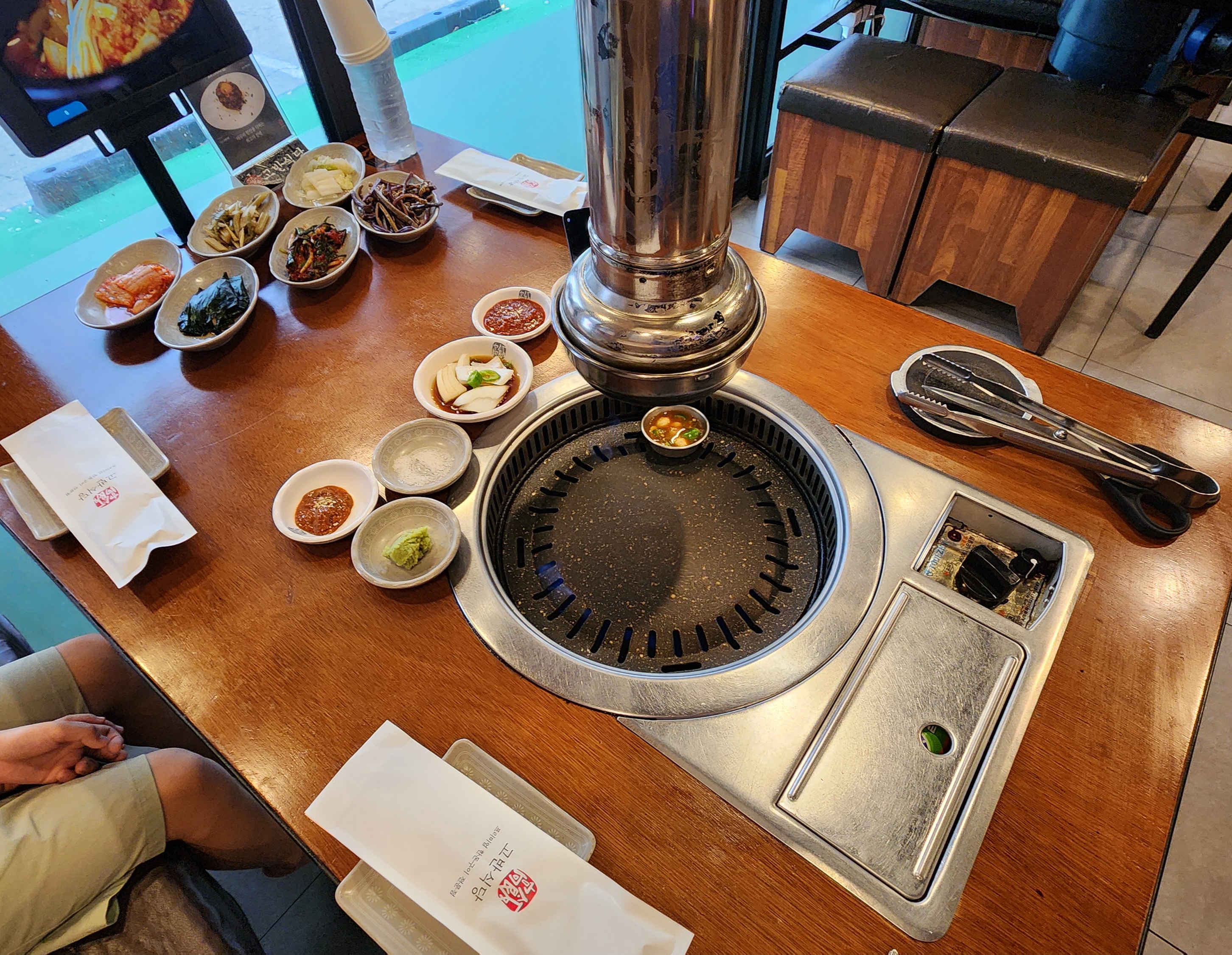 테이블간격이 떨어져있고 옆 테이블은 파티션 처럼 되어있어서 손님들이 만석이어도 불편함 없이 고기 먹기 편하겠더라구요.