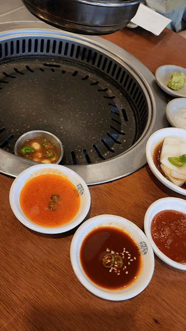 고기도 신선하고, 밑반찬이랑 소스가 많아 어떻게 고기랑 곁들여 먹는 재미가 있는 식당이었어요.