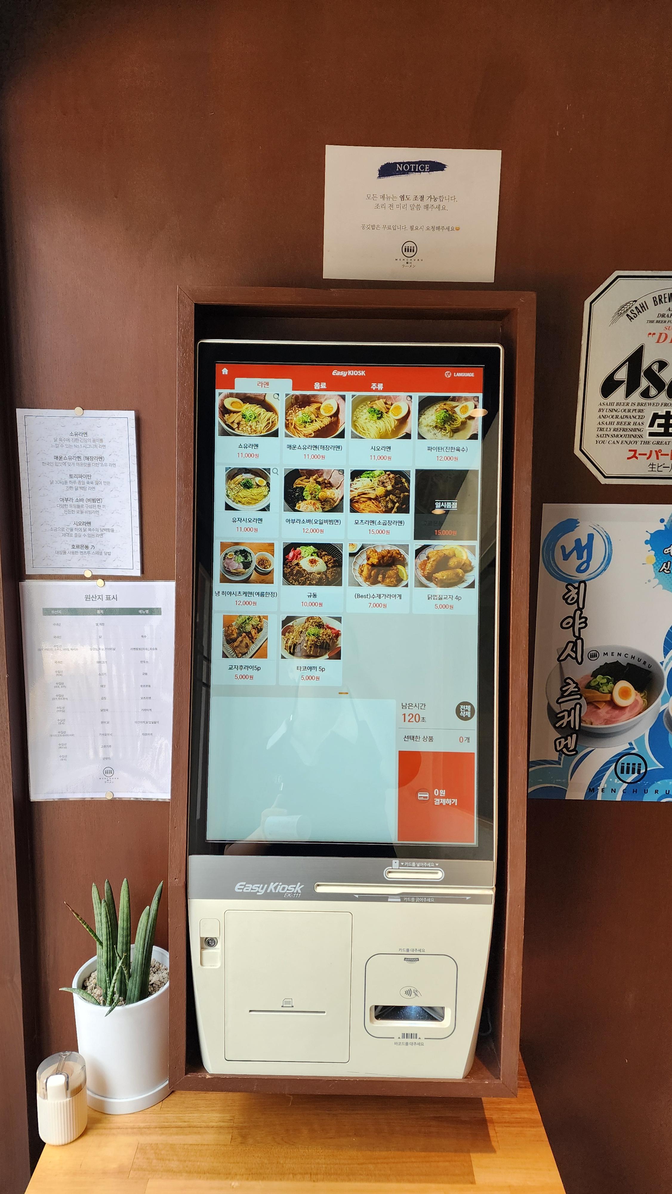 멘츠루 신사점에 들어서면 키오스크가 있어요.
