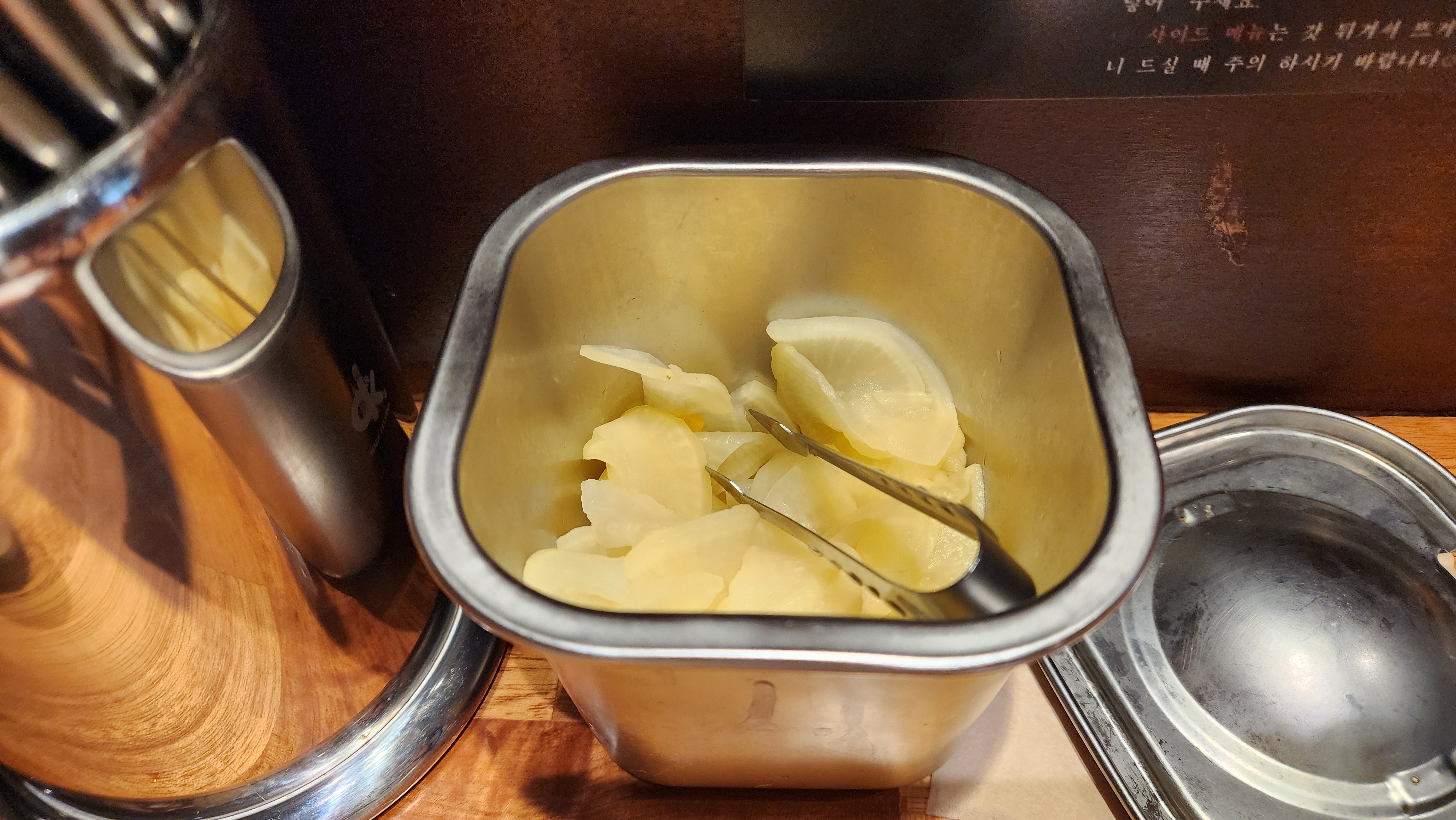자칫 느끼할 수 있는 부분은 대파와 생강절임이 잡아주더군요.