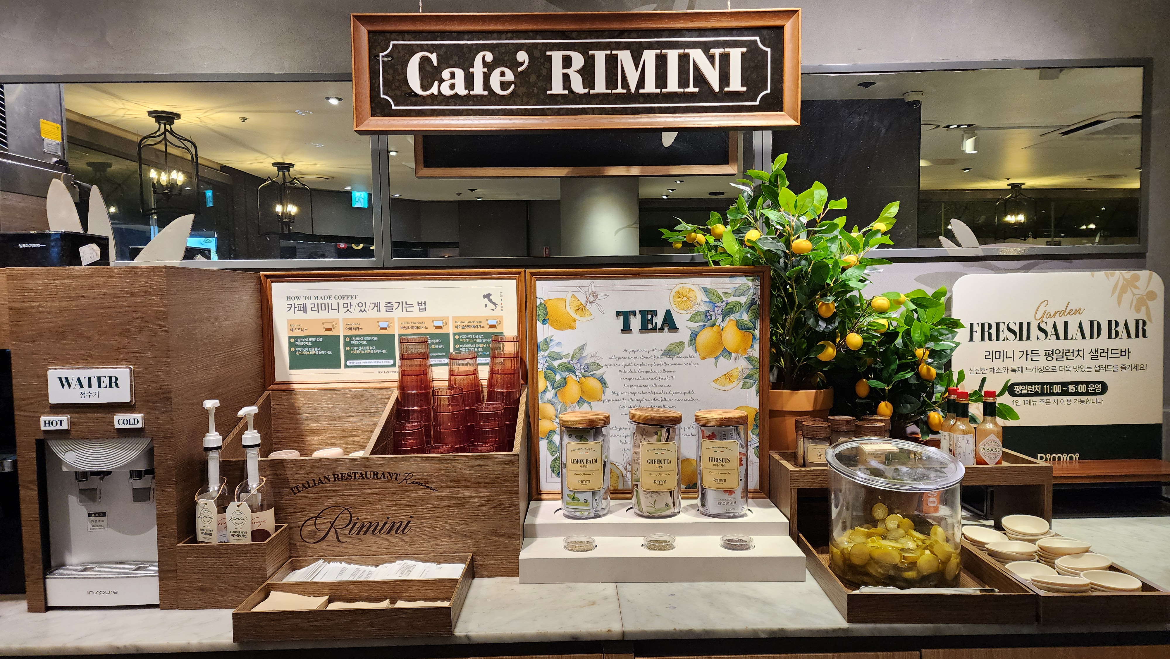 1층에 있는 스타벅스에서 커피 한잔만 마셔도 무료 주차 2시간이 적용되는데 리미니는 식사로 비용을 더 많이 써도 무료 주차 혜택이 적용되지 않아서 구매금액에 따라 주차 정산이 되면 좋겠다는 생각이 들었어요.
