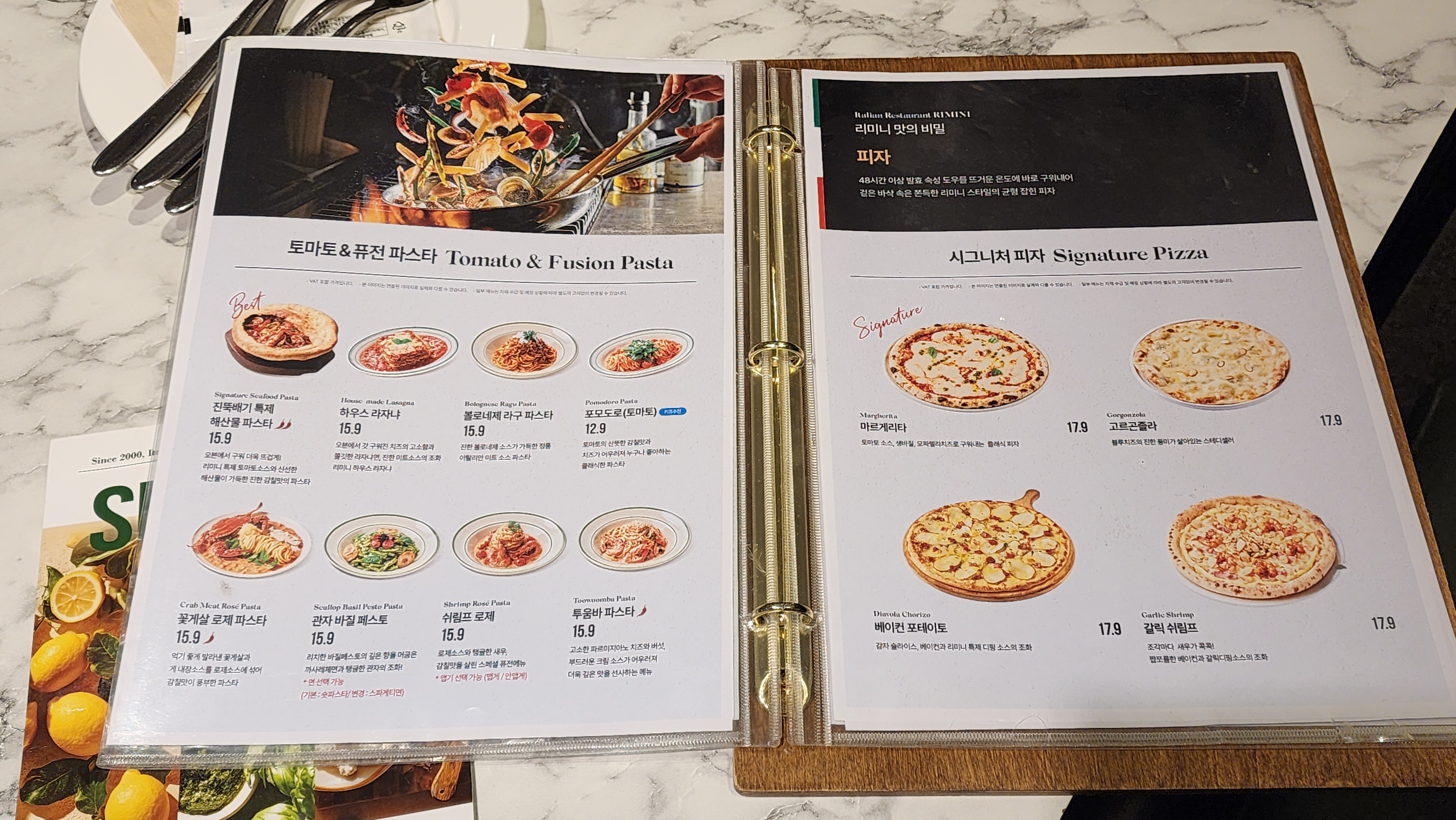 토마토 & 퓨전 파스타 메뉴도 있었고 시그니처 피자 메뉴도 있었어요.