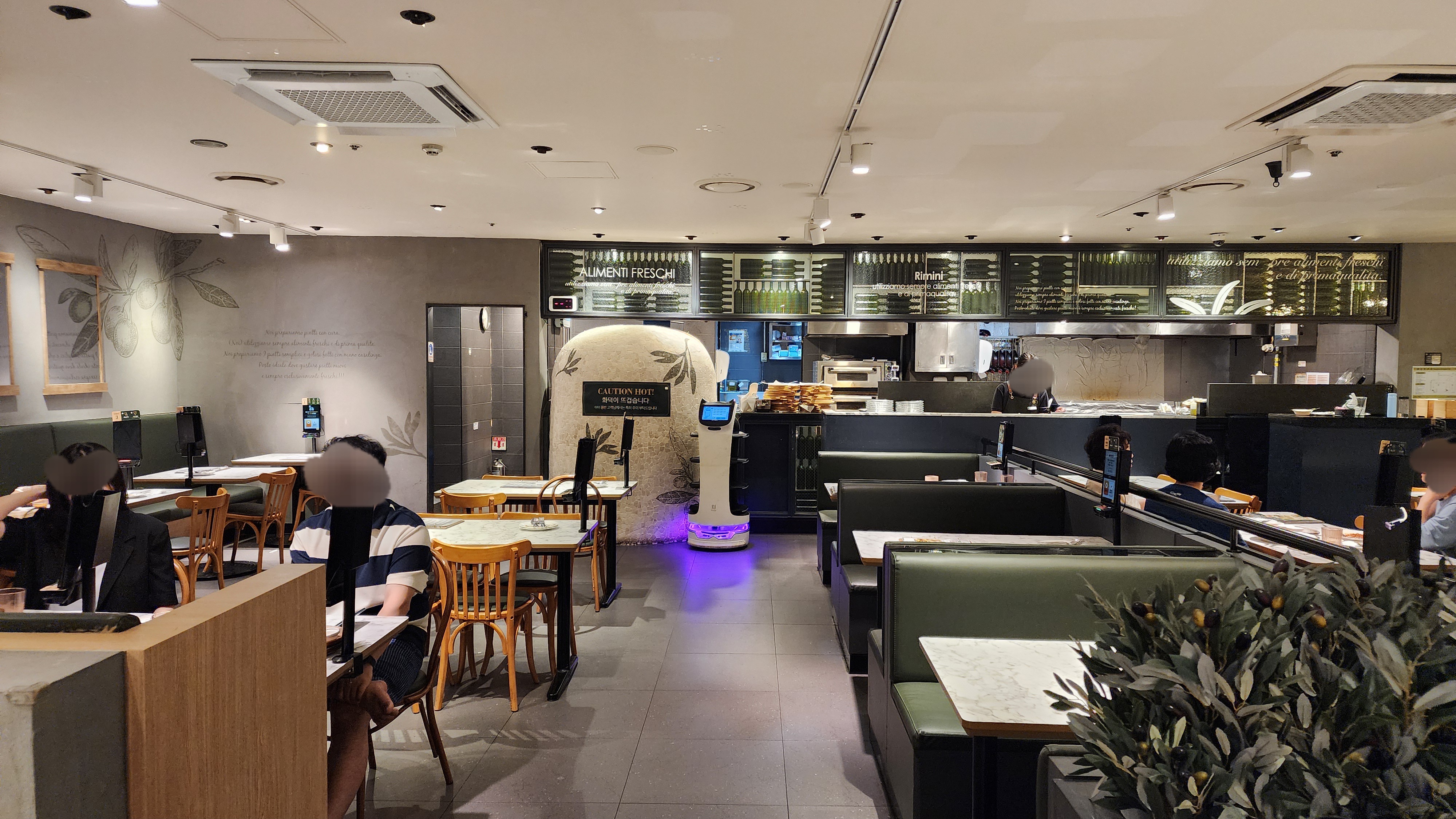 직원분이 음식을 가져다주시기도 했는데 피자는 서빙로봇이 테이블로 가져다 주더군요.