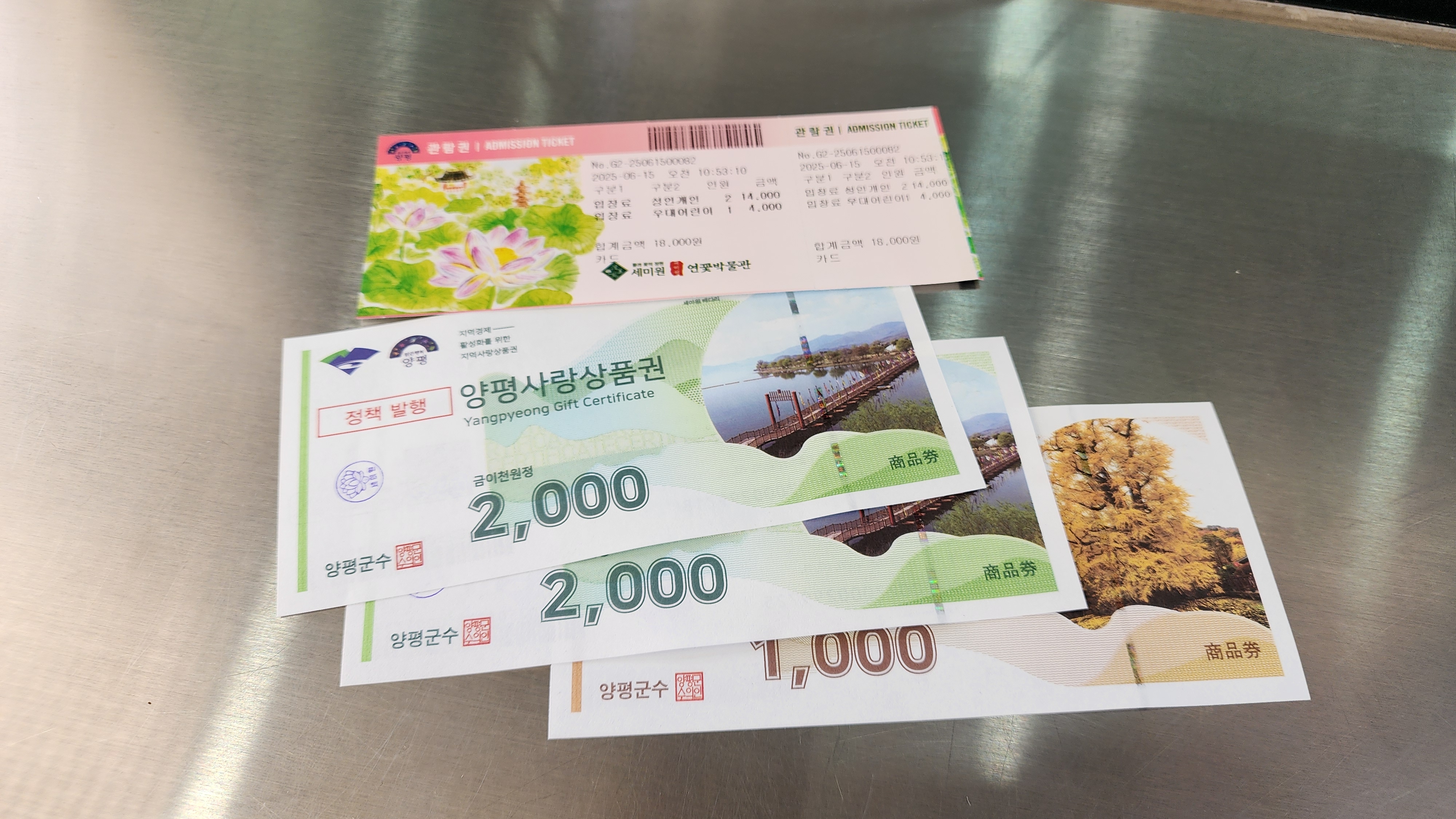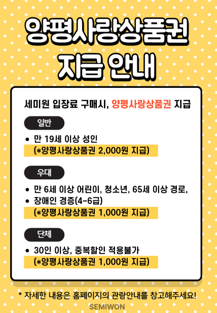 세미원 입장료 구매시 양평사랑 상품권을 지급해줘요.