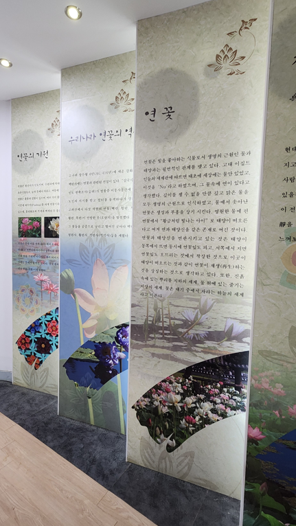 연꽃과 관련된 전시품들이 전시되어있었어요.