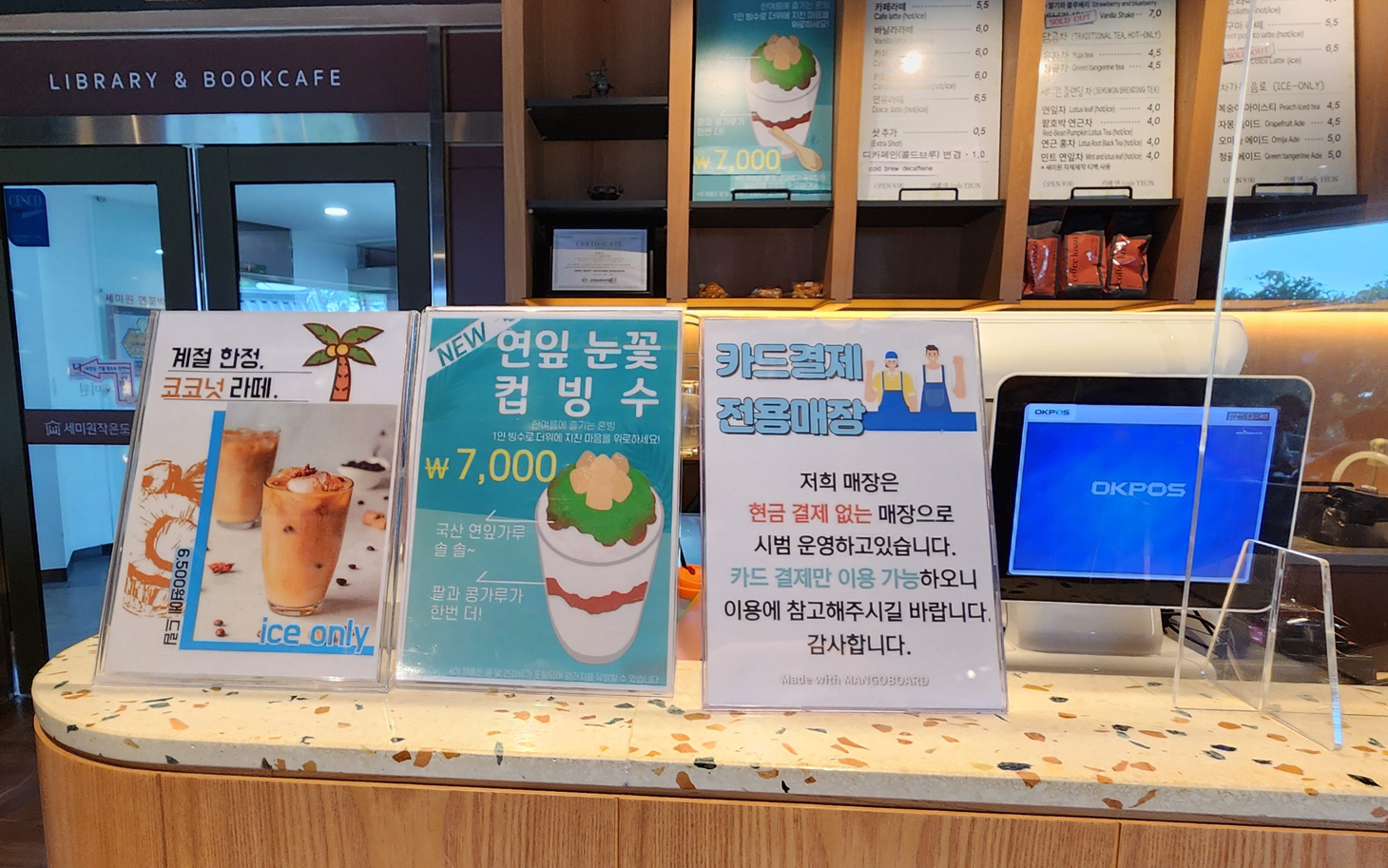 카드결제 전용매장이라 현금을 사용할 수 없어요.