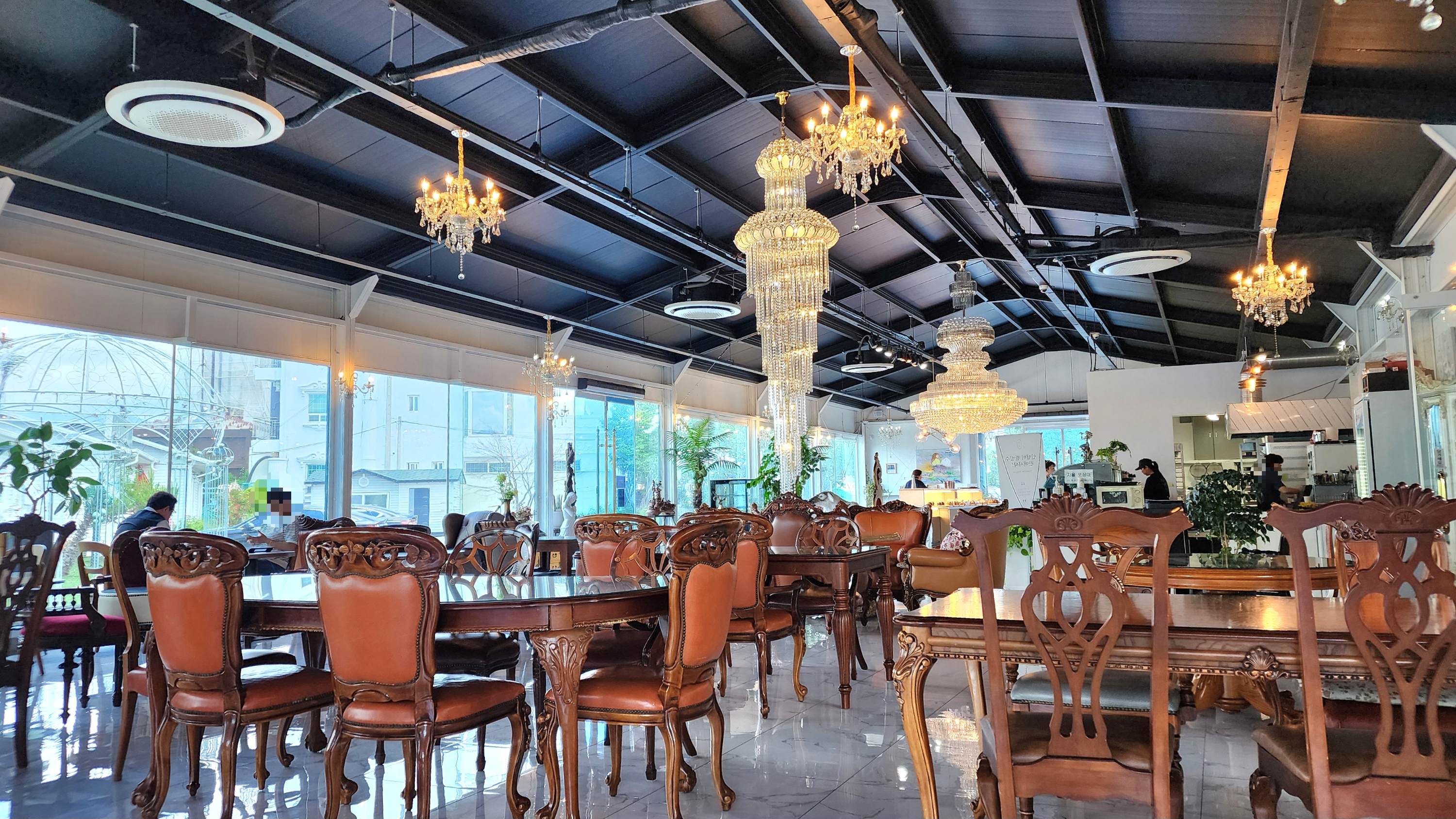 카페 안에 들어서면 휘황찬찬한 샹들리에 들이 먼저 눈에 띄더군요.