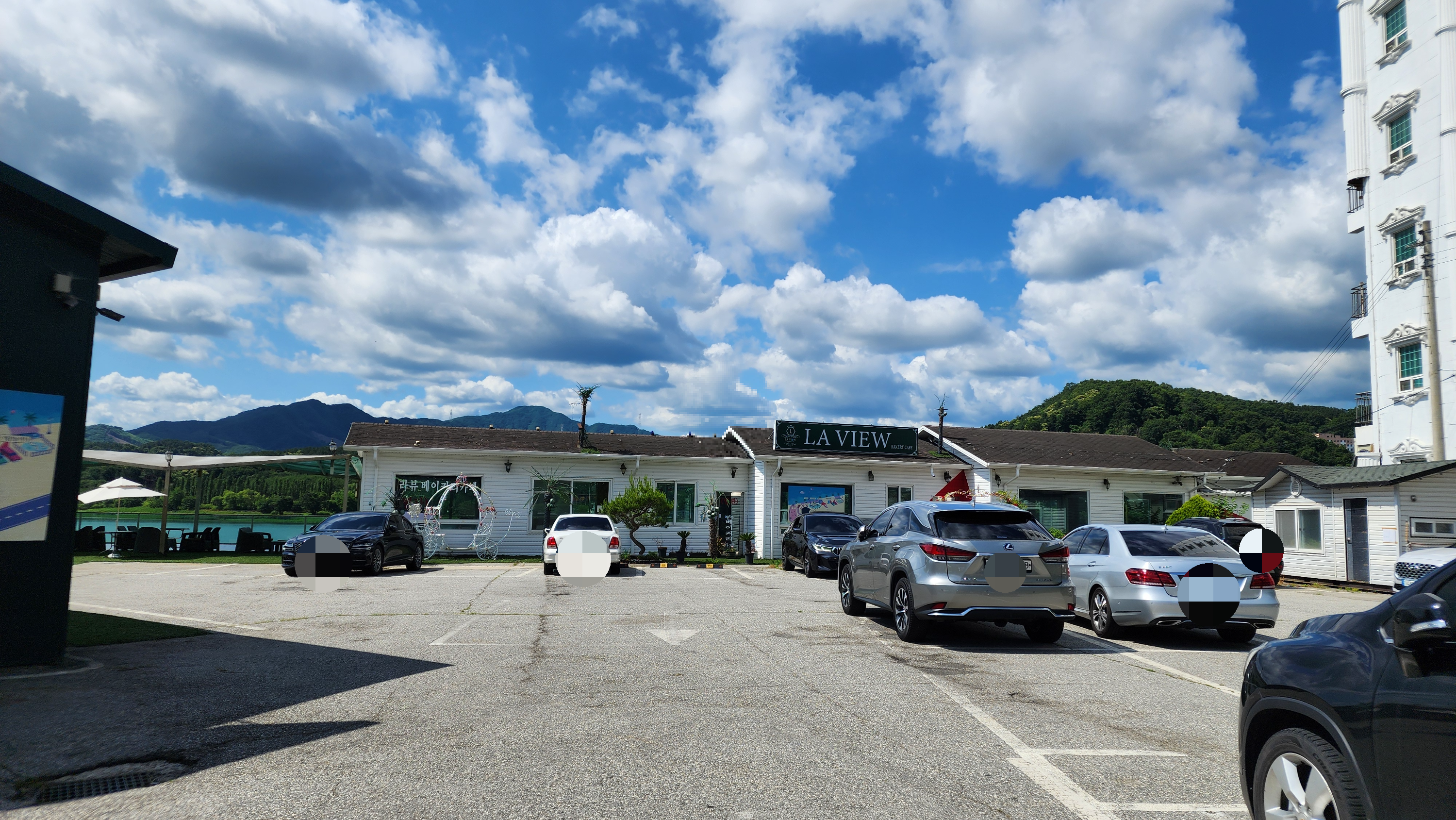주차공간도 넉넉했고, 정면에 보이는 하얀 건물은 라뷰베이커리 카페 별관인데 공사중이었어요.