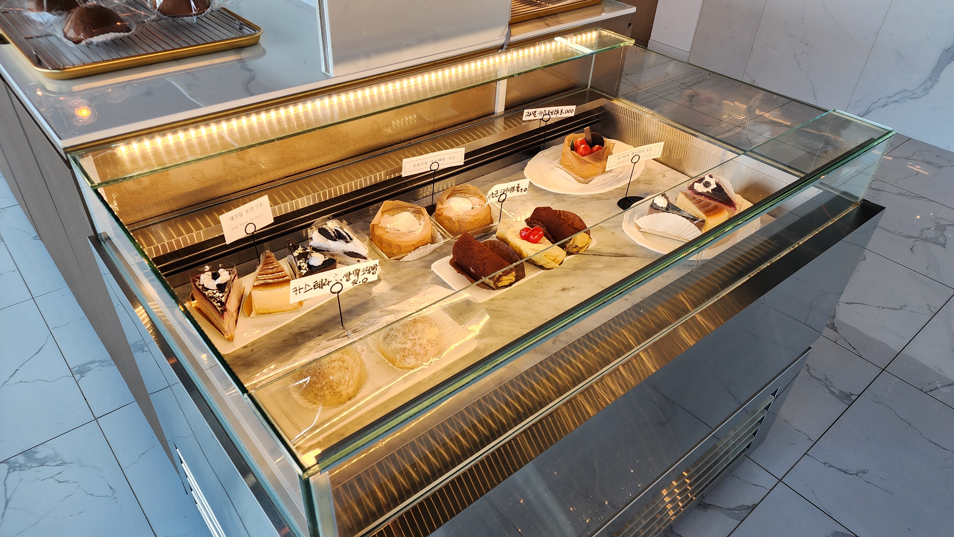 베이커리 카페 답게 빵도 종류가 많았고, 가격대도 강뷰 카페를 감안했을 때 납득이 되는 가격이었어요.