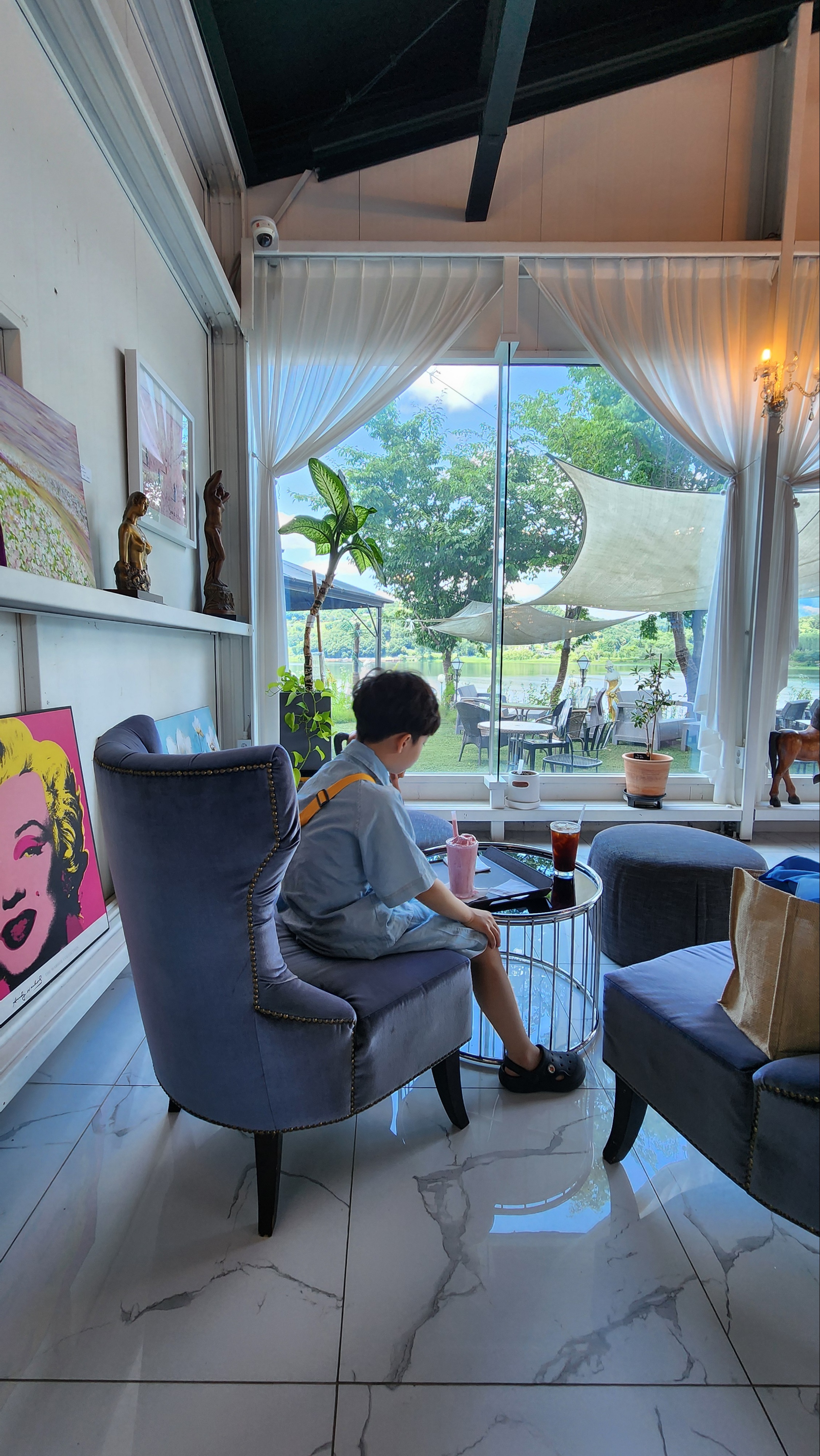 안녕하세요, 동글동글라이프 의 동글엄마예요^^ 양평 세미원·두물머리 가족여행 중, 아이가 좋아한 아이스크림이 있는 카페 가람에 다녀왔어요.두물머리에 카페가 꽤 많은데요 강뷰와 테라스