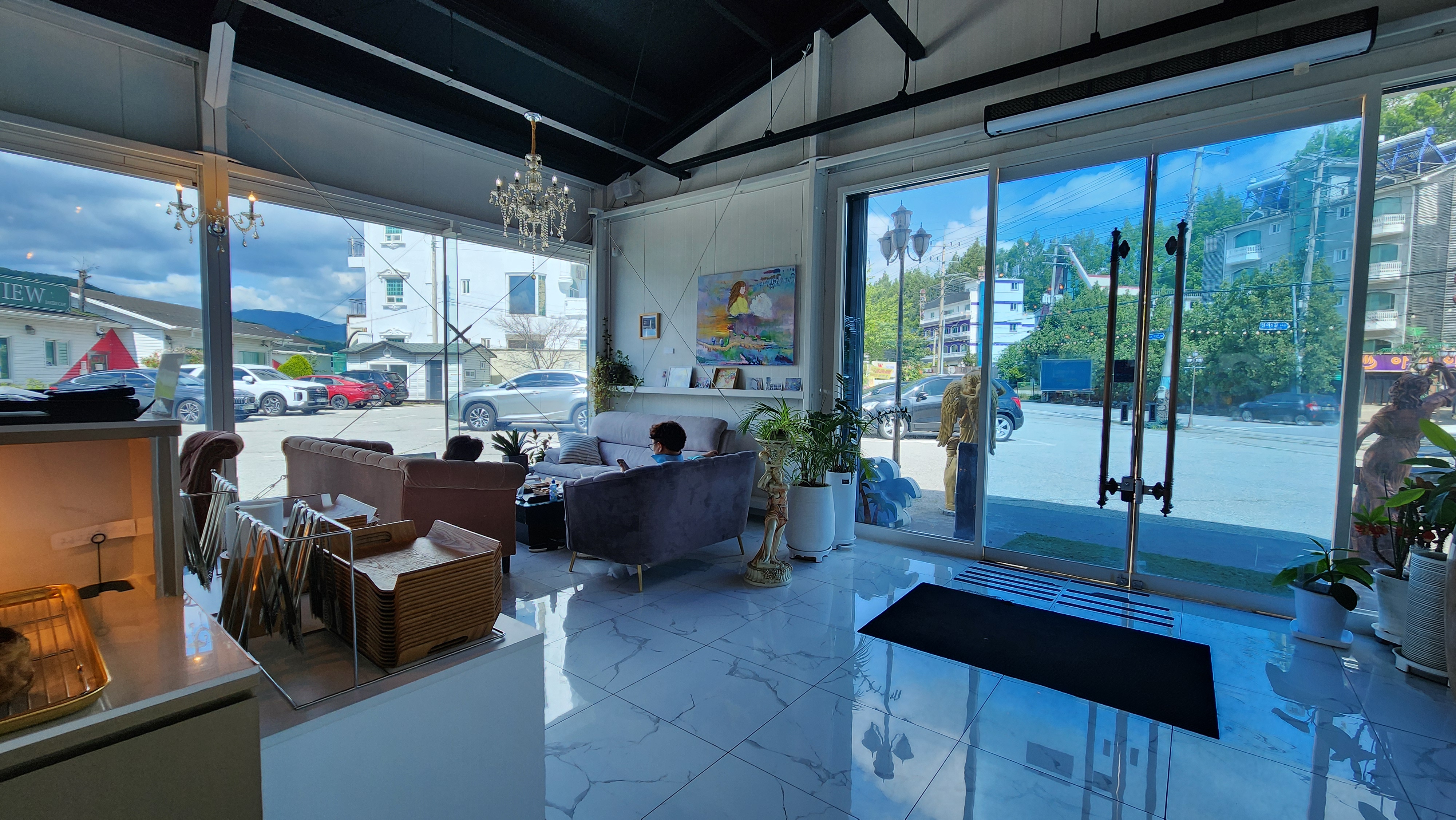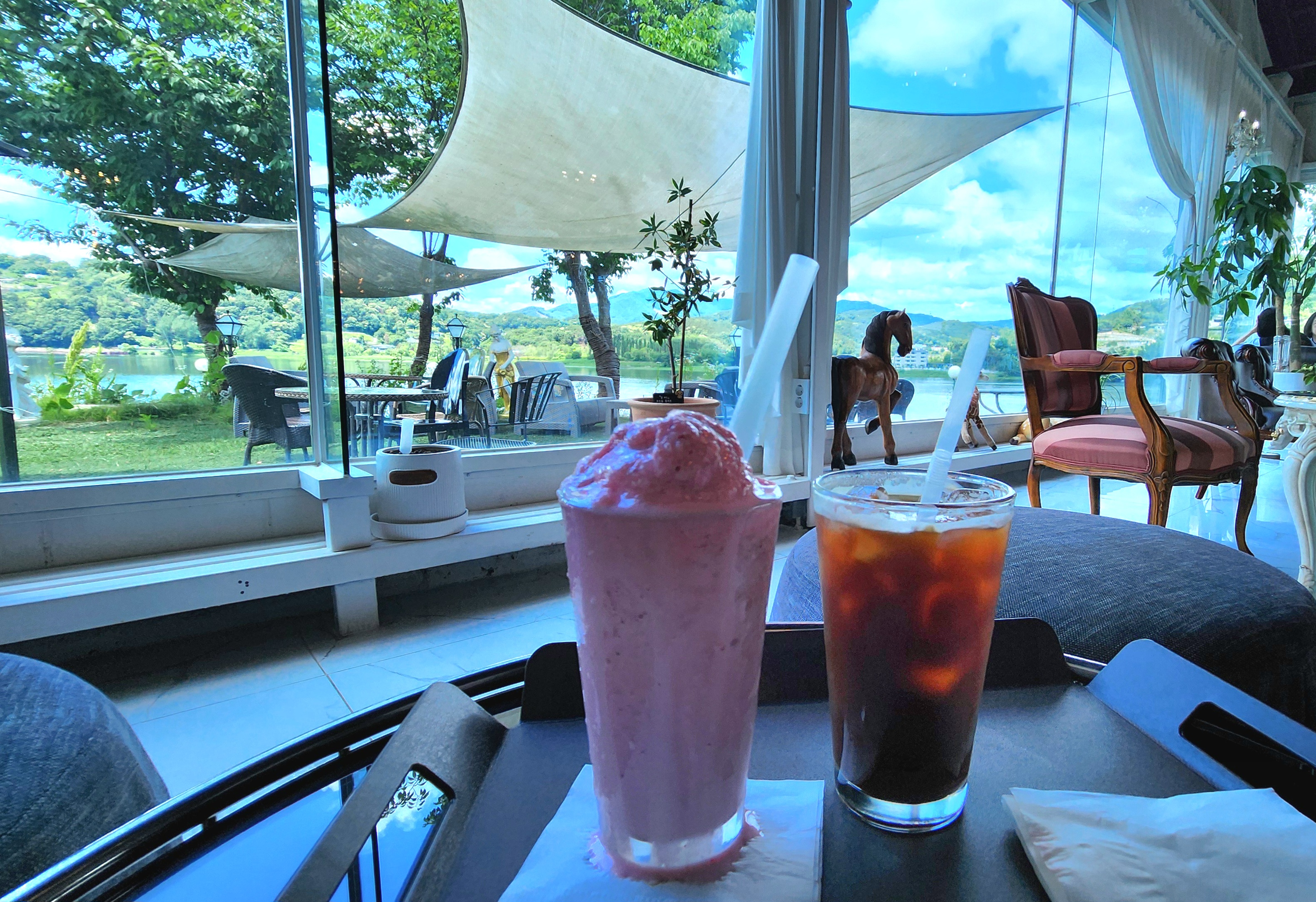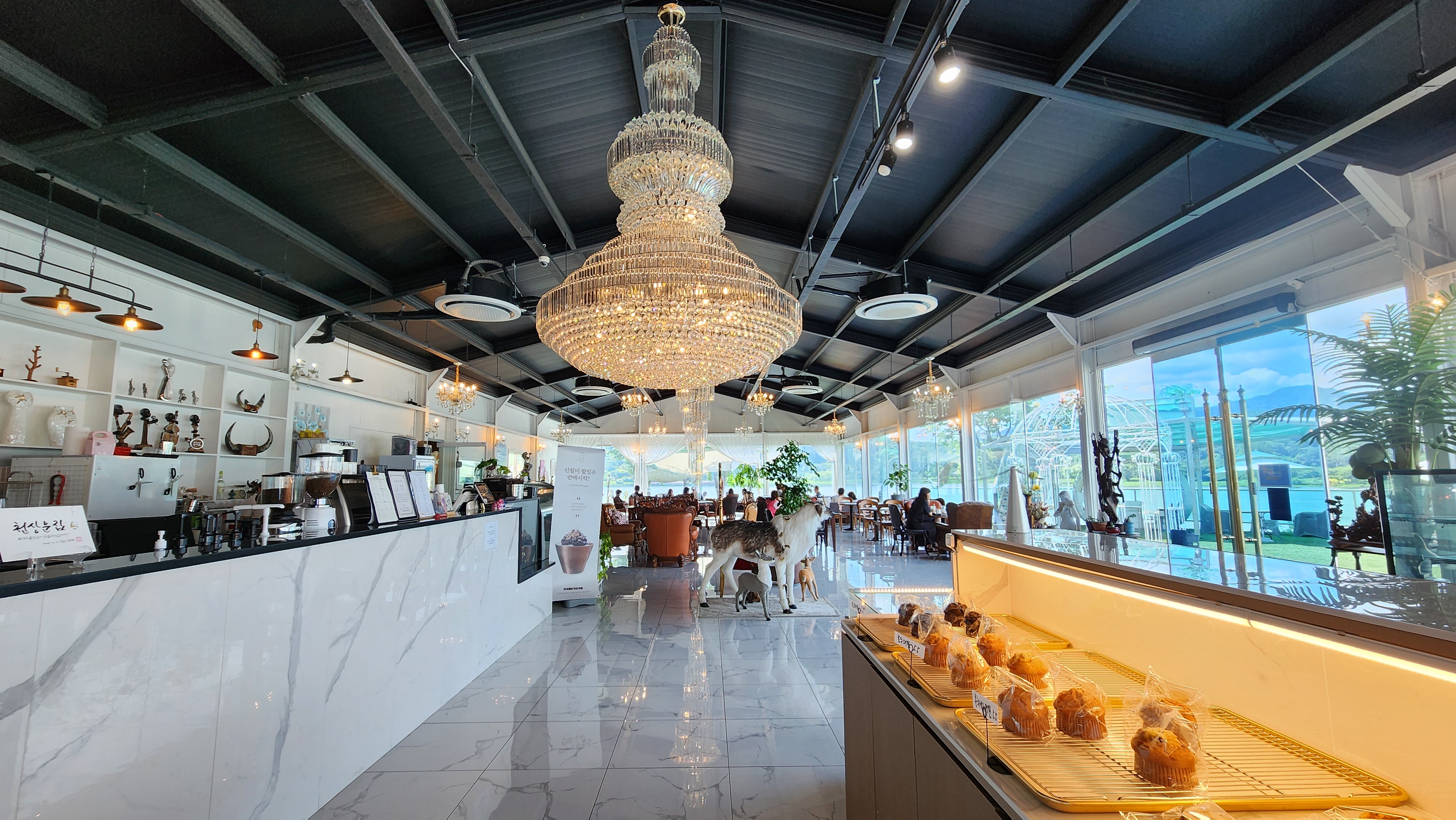 카페 측면이 다 통창이라서 어느 좌석에 앉아도 바깥 풍경을 원없이 감상할 수 있어요.