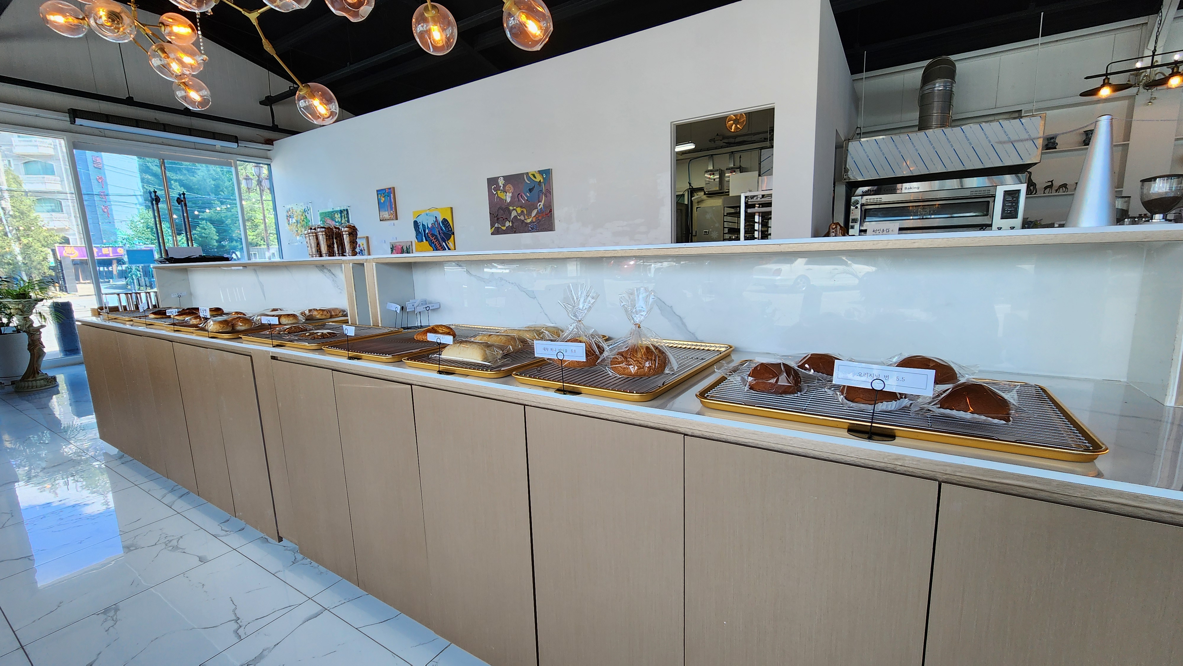 베이커리 카페가 아니라 갤러리 카페인가 싶게 다양한 작품들이 걸려있어서 작품 보는 재미도 쏠쏠하더군요.