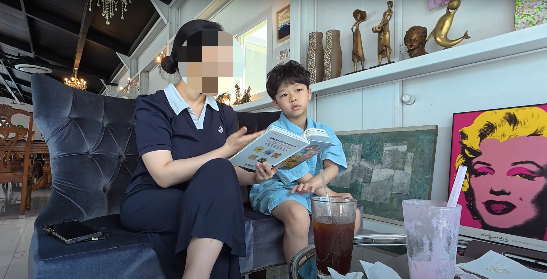 동글이가 좋아하는 블루베리 스무디와 제가 마실 아이스 아메리카노를 주문했는데요, 블루베리 스무디 양 보실래요?