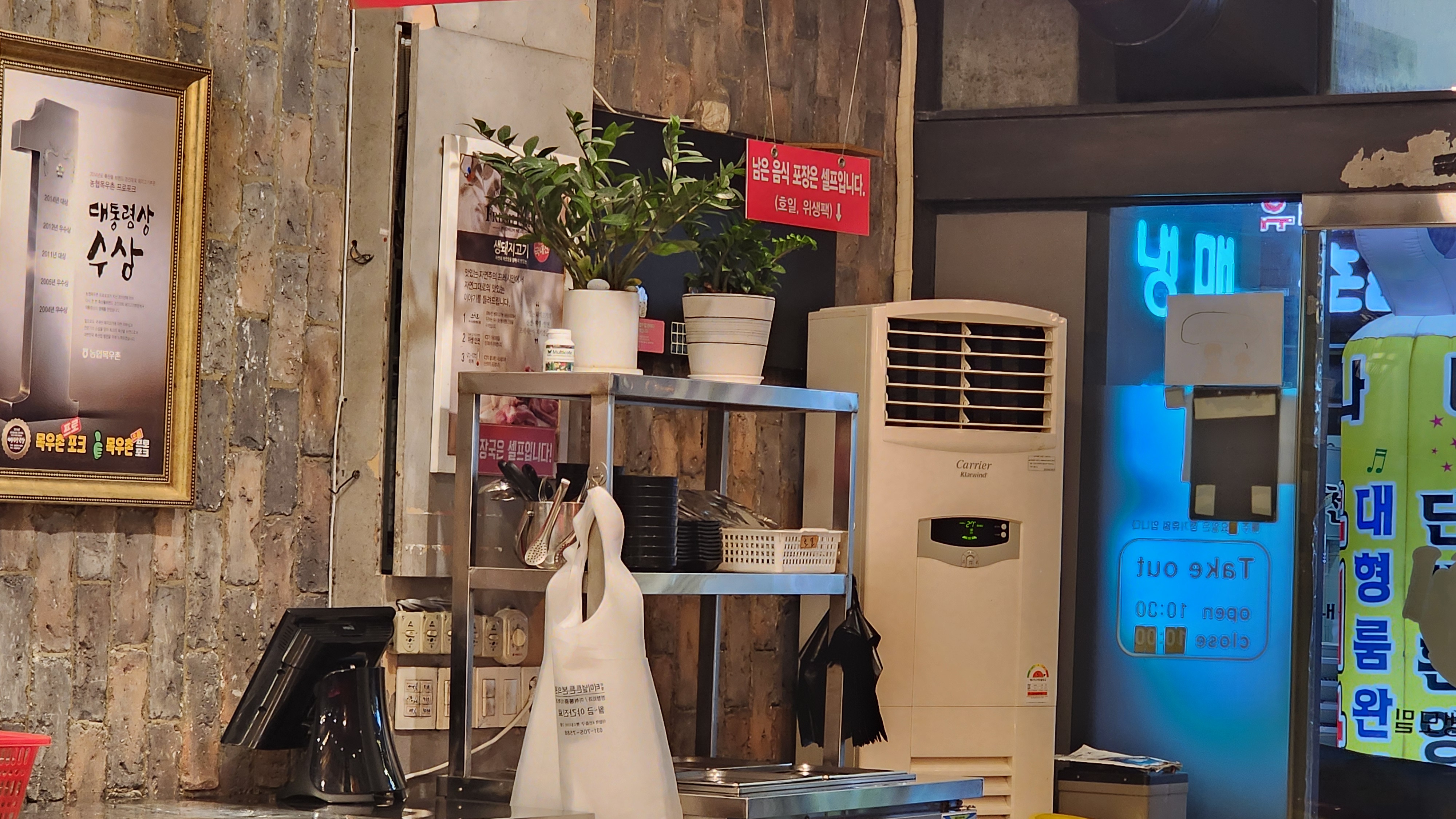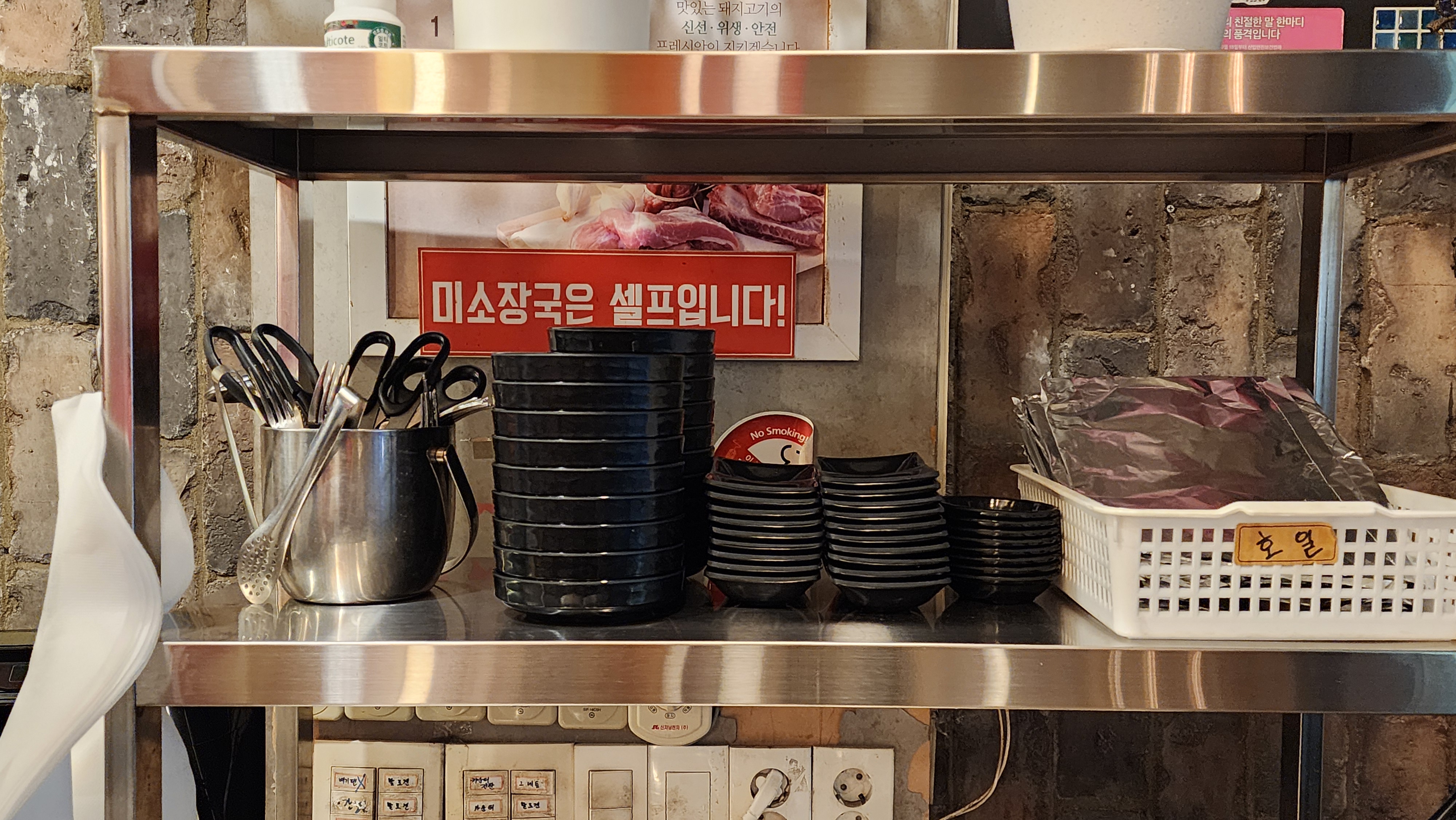 앞치마, 식기류 등이 있었고 다른 식당과 달랐던 점은 음식 특히 돈까스가 남으면 싸갈 수 있게 호일이 있다는 점이었는데요, 식사 나왔을 때 왜 호일이 있어야 하는가 절실히 느끼고 왔네요.