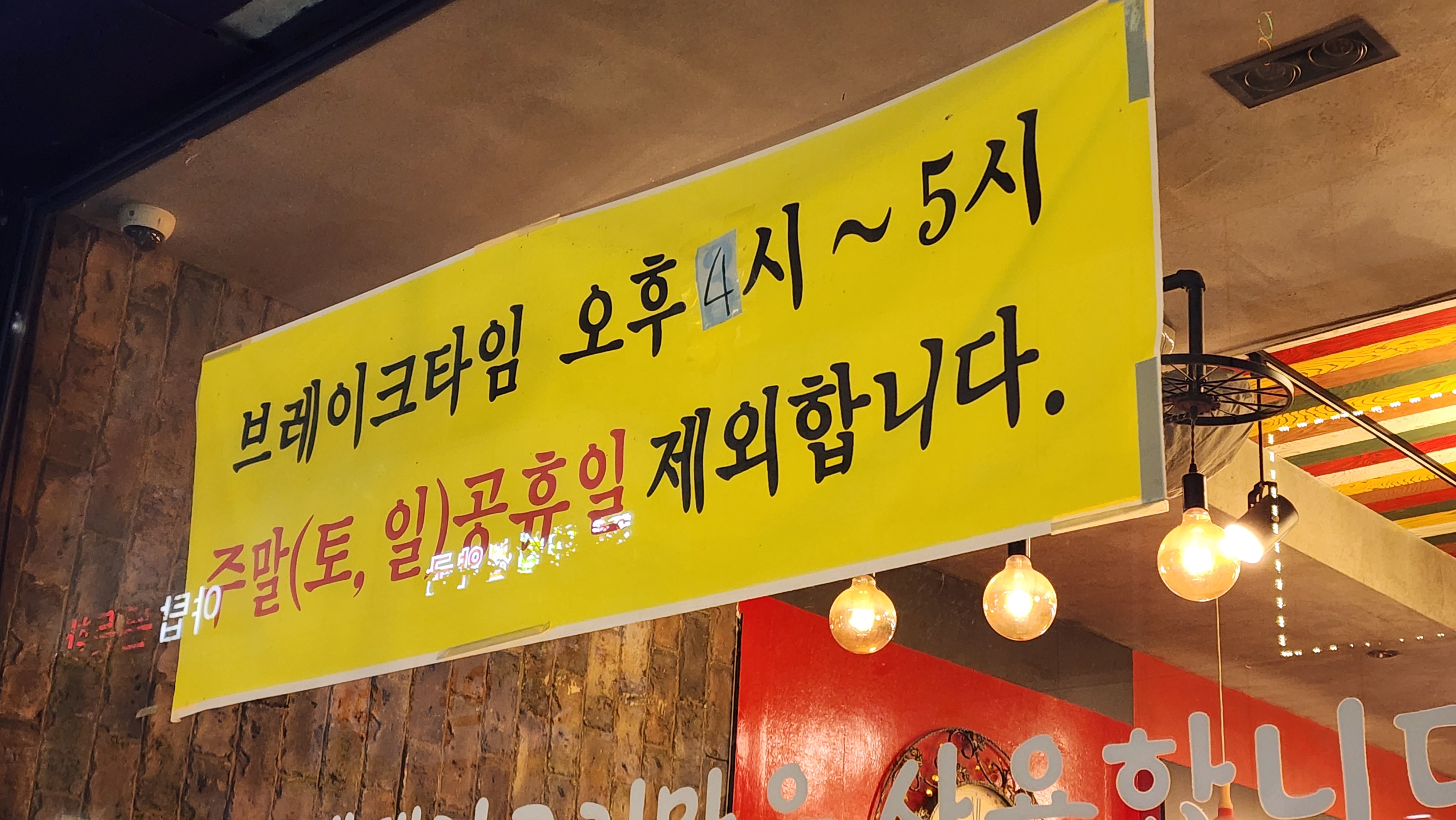 평일은 브레이크타임이 오후 4시부터 5시까지 한시간이고 주말과 공휴일엔 브레이크 타임이 없다고 해요.