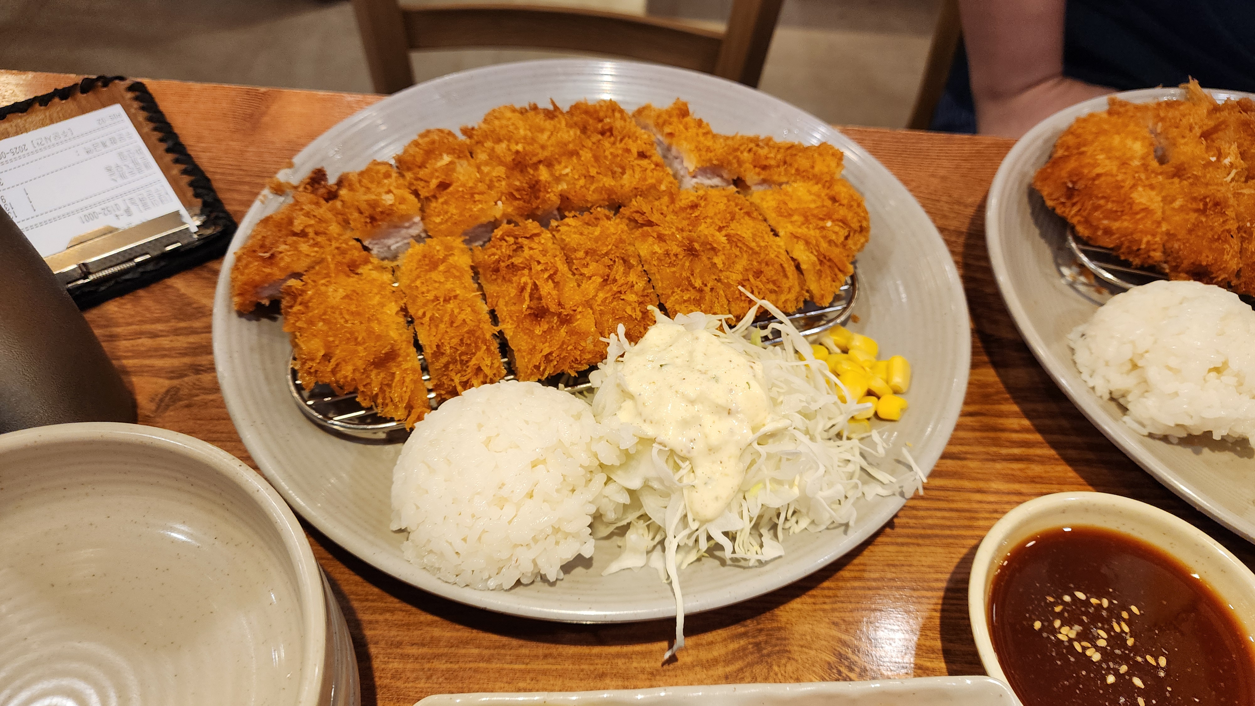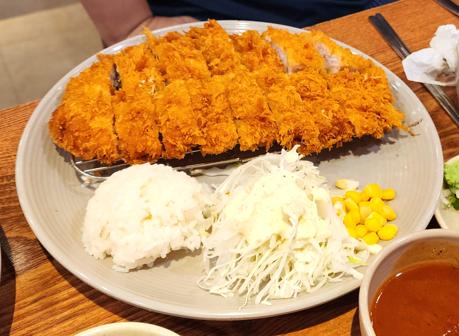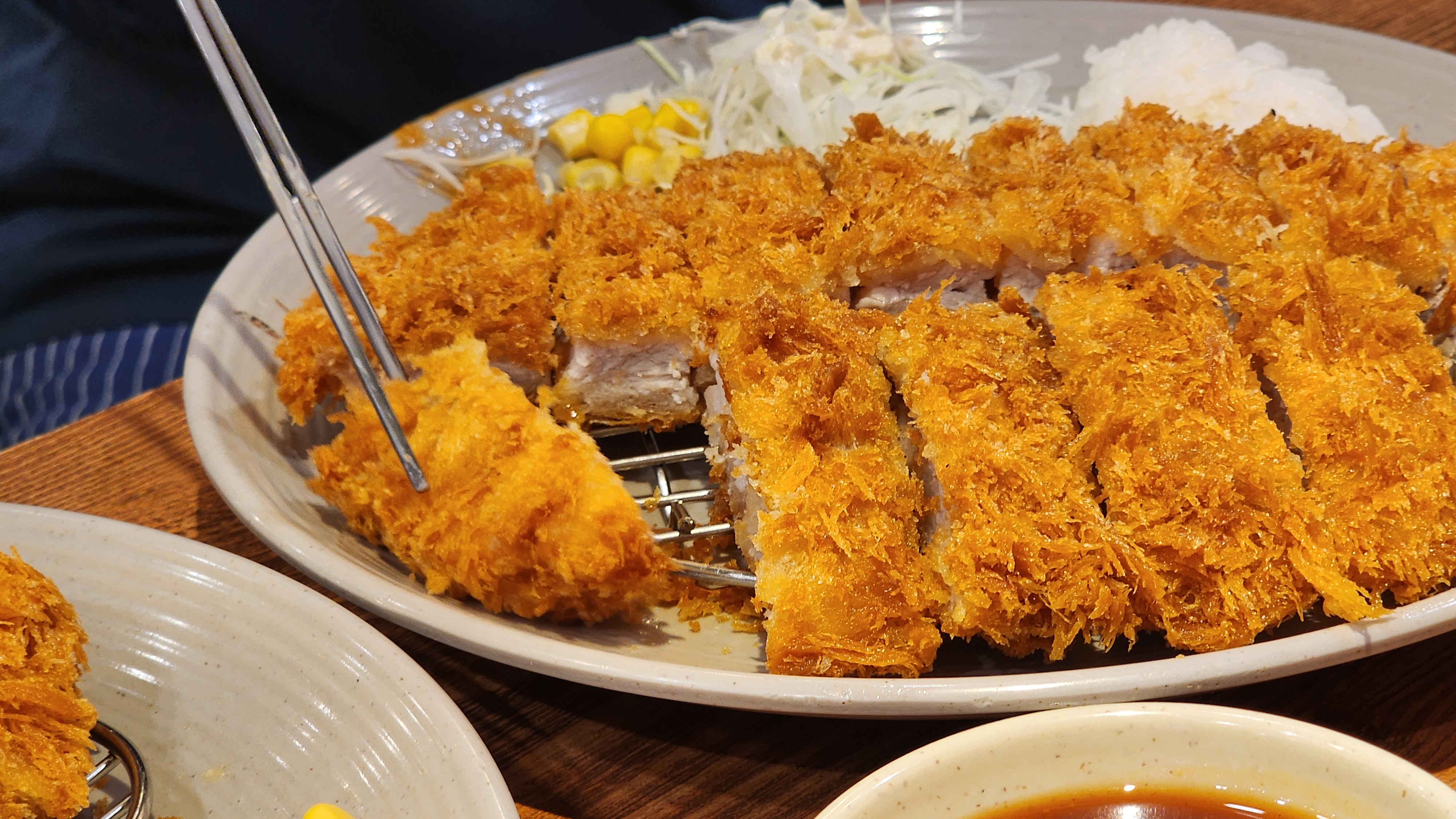 음식 모형이 식당 앞에 있었는데요, 손님들이 잘 보라고 크게 만들어놓았나 싶었거든요? 그런데 돈까스 받아보고 아 여기 양 엄청 많구나 하고 좀 놀랐어요.