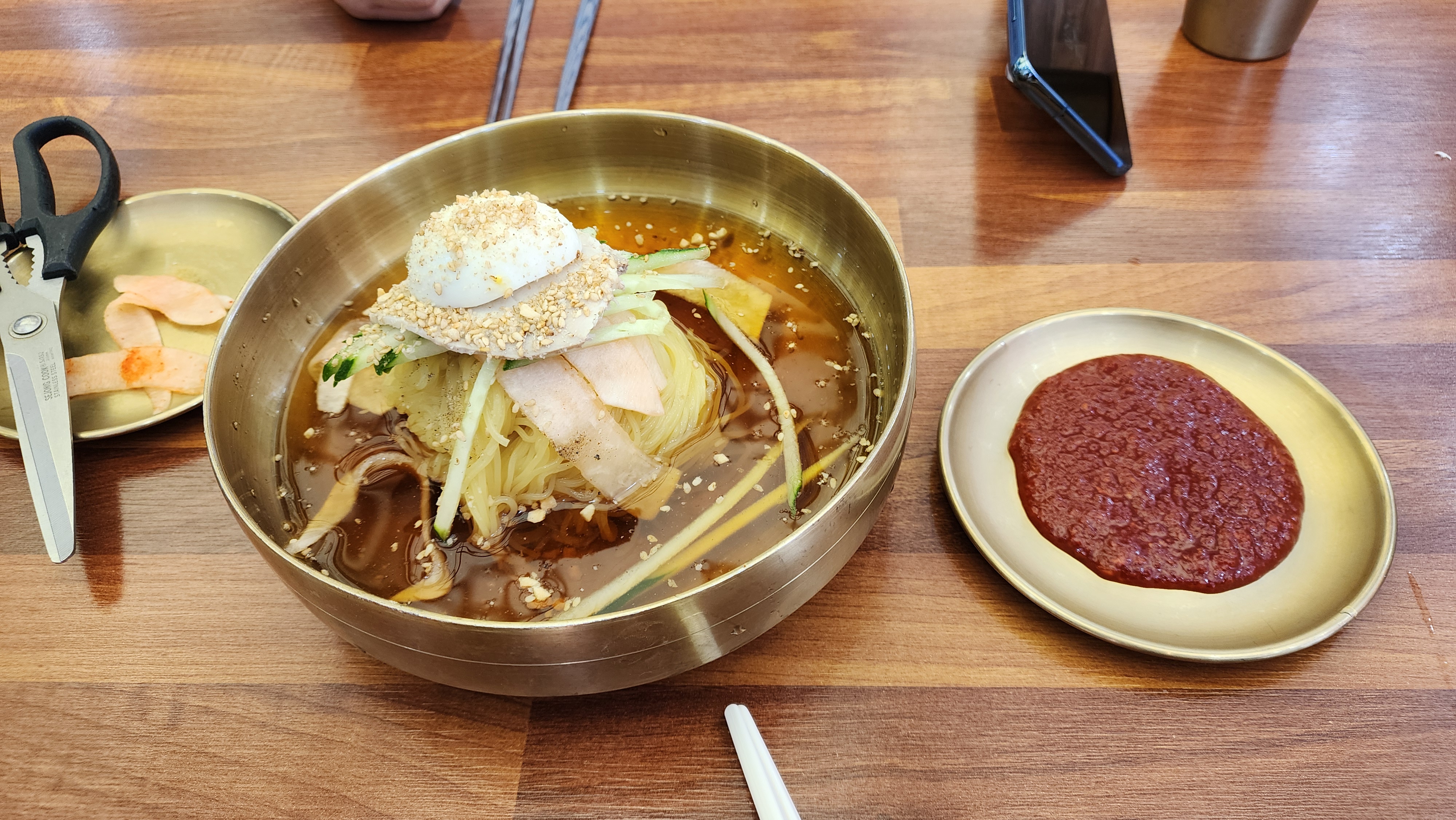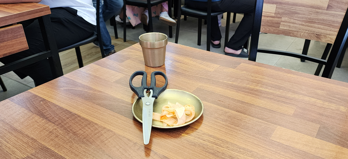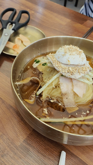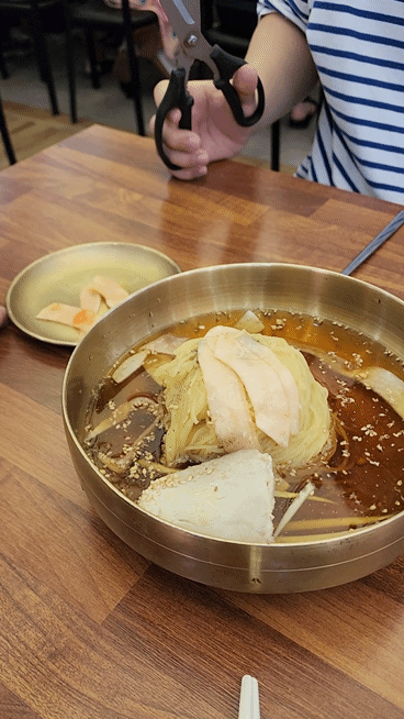 무절임이랑 가위도 가져다 주셨는데요 밀면이 길면 잘라먹으라고 가위도 미리 준거 더군요.