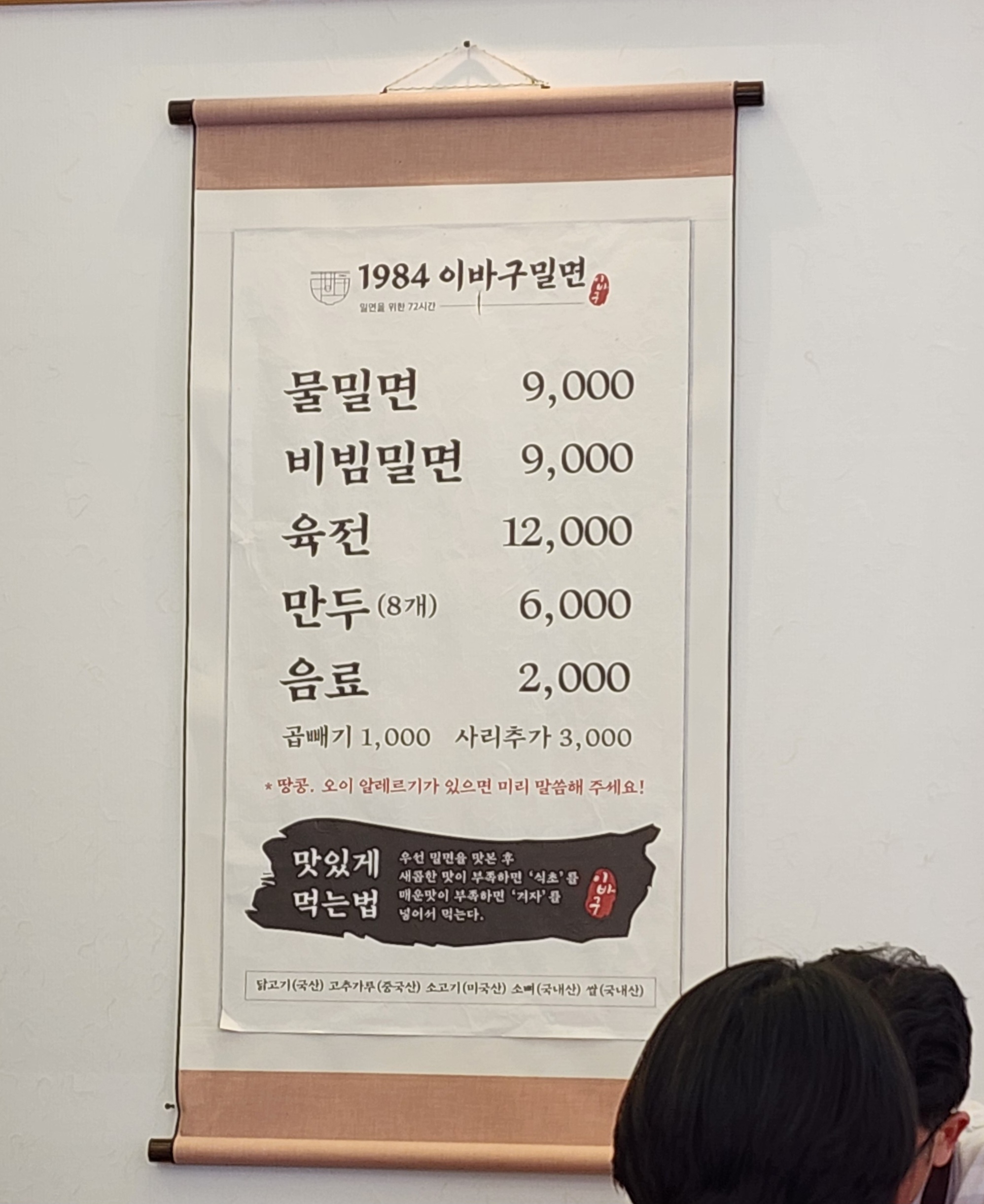 1984 이바구밀면 메뉴