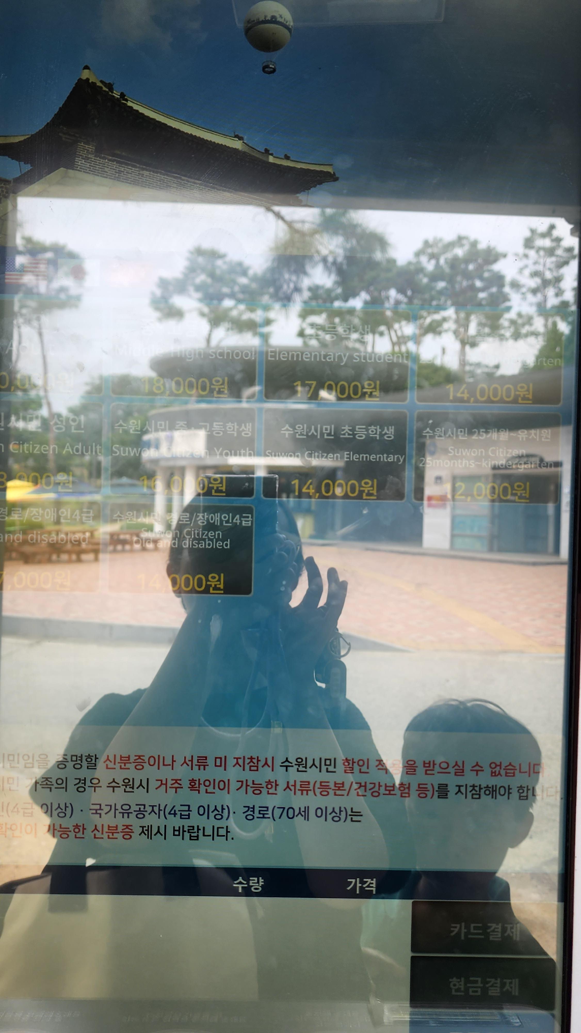 이용요금은 포스팅 상단에 수록해두었고요 저랑 동글이는 수원시민이 아니라서 일반요금, 초등학생 요금 적용해서 티켓팅 했어요.