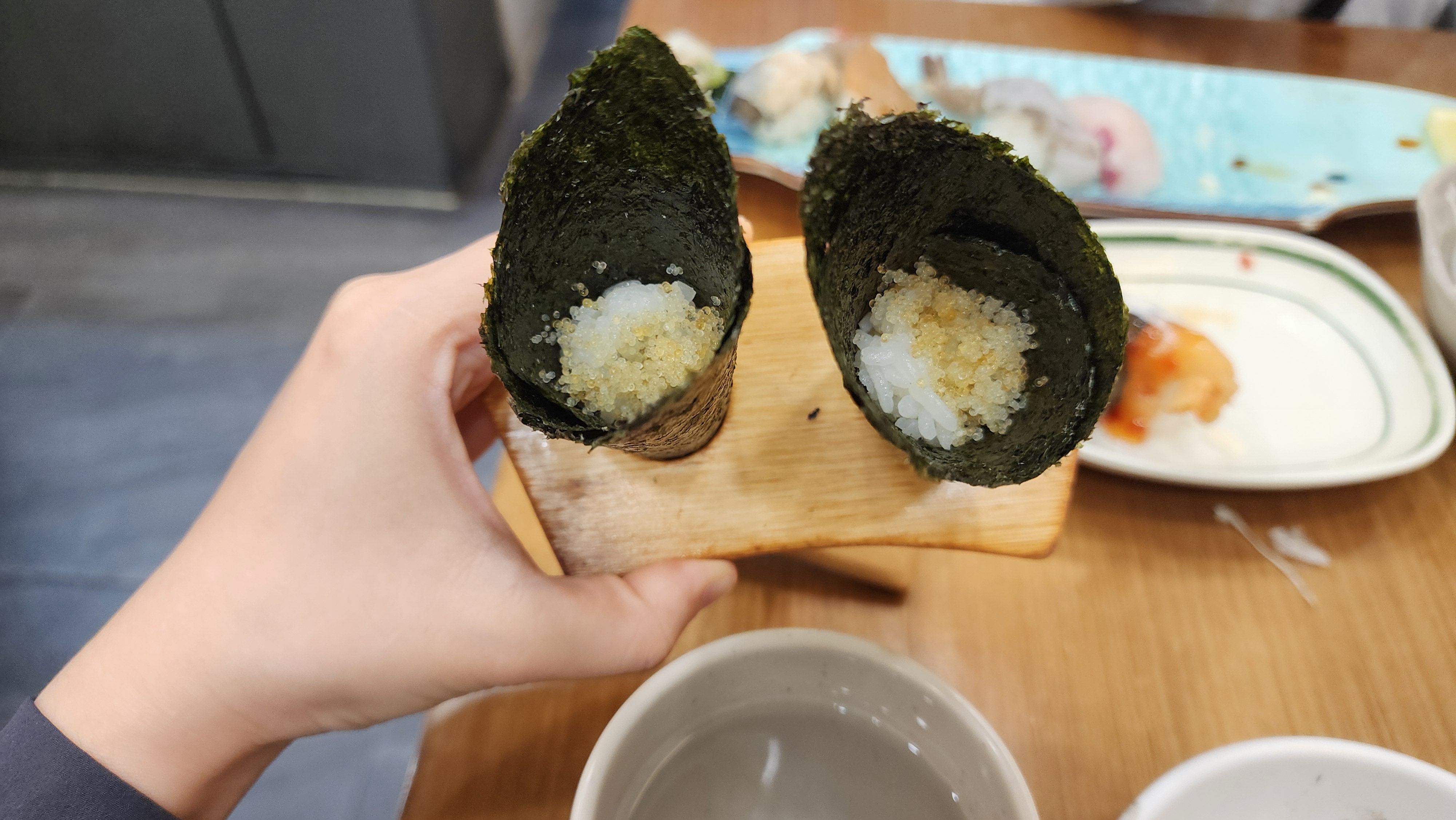 식사중에 서비스라면서 이렇게 또 맛있는 초밥을 가져다 주시더라고요.