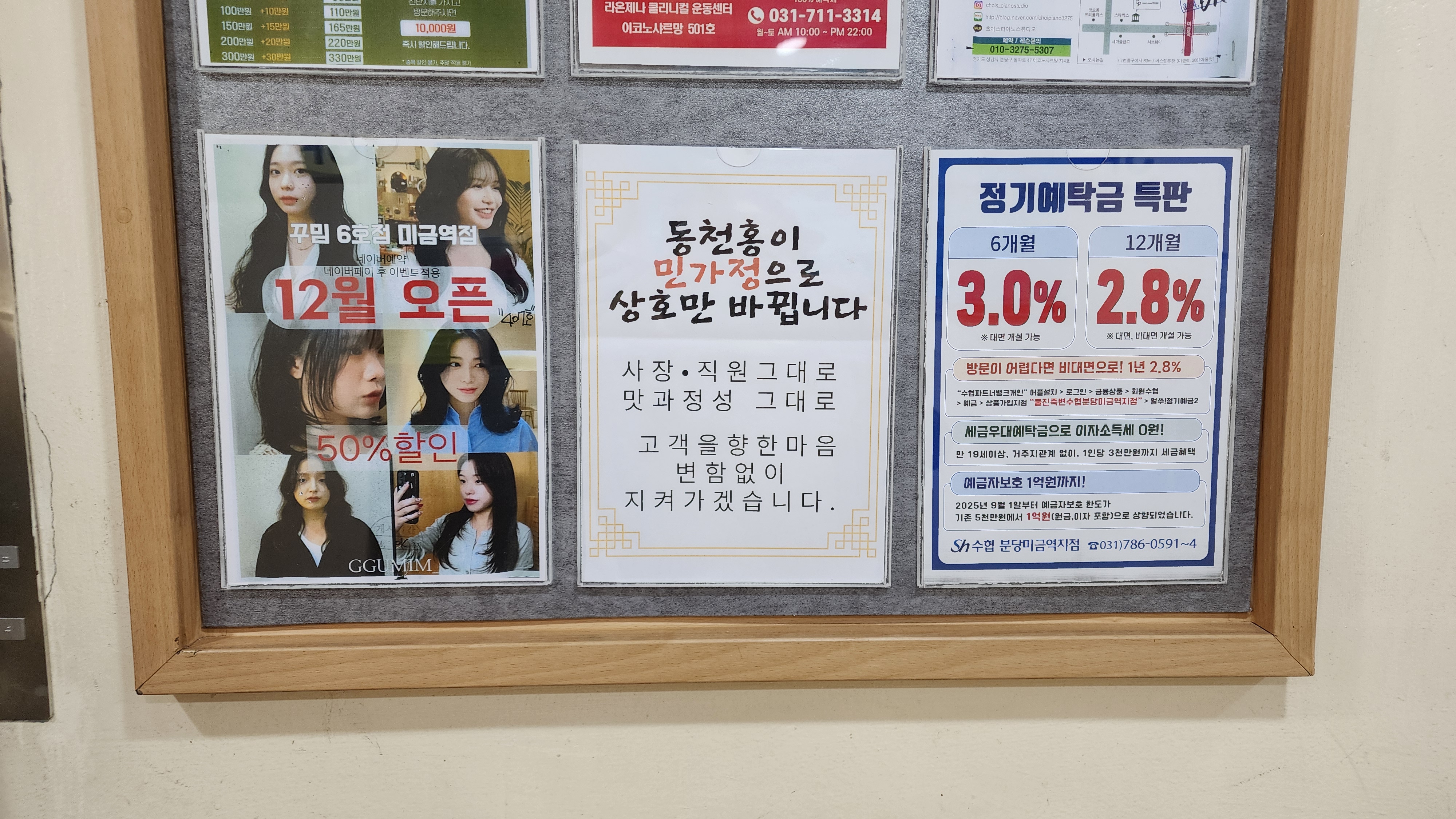 동천홍이 민가정으로 상호만 바뀌었다는 안내가 상가 게시판에 붙어있었어요.