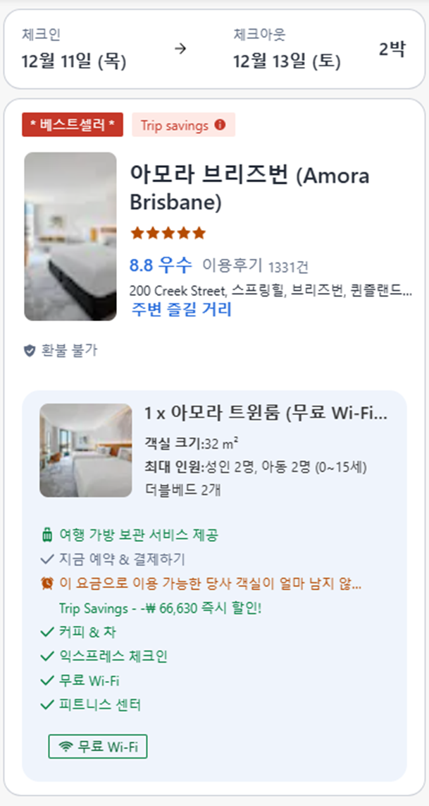 | [ 호주 브리즈번 숙소 ] 아모라 호텔 브리즈번 - 아모라 프리미어 트윈룸 후기(수영장 포함) (0) | 2026.01.31 |