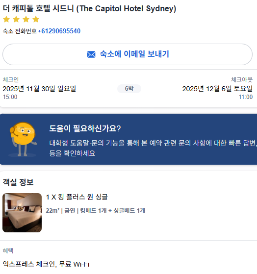 2025.12.27-[ 호주 시드니 숙소 ] 더 캐피톨 호텔 시드니( 6박 7일 숙박 후기 )