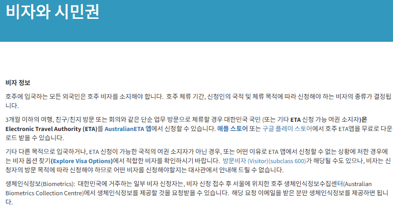 호주는 비자를 꼭 미리 발급 받으셔서 더 안심이 되는 여행 준비하셨으면 좋겠어요.