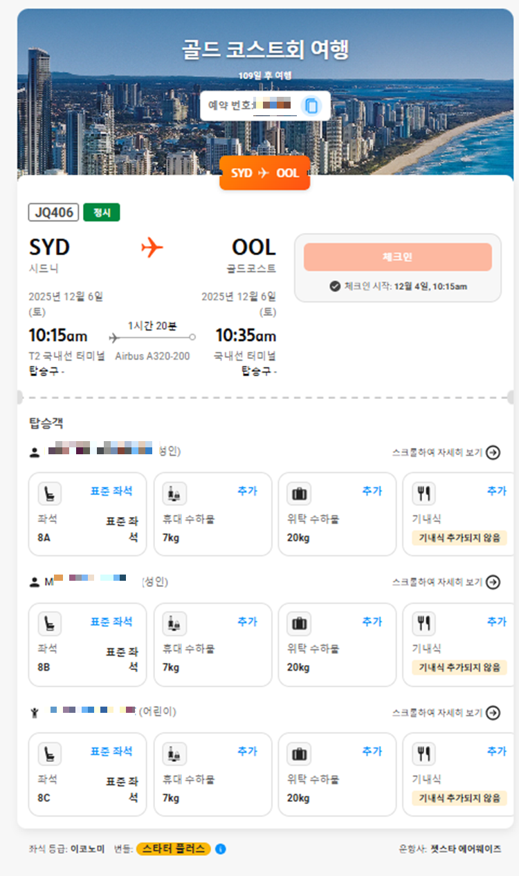 예약이 어렵진 않았는데 비용이 저렴한 편은 아닌 것 같아서 도시간 이동하실 때 다른 방법들도 고려해보시면 좋을 것 같지만 시드니에서 골드코스트 까지는 제법 거리가 있으니 다른 교통편을 이용하시는 것 보다는 최대한 저렴한 항공권을 겟 하시길 바랄게요.