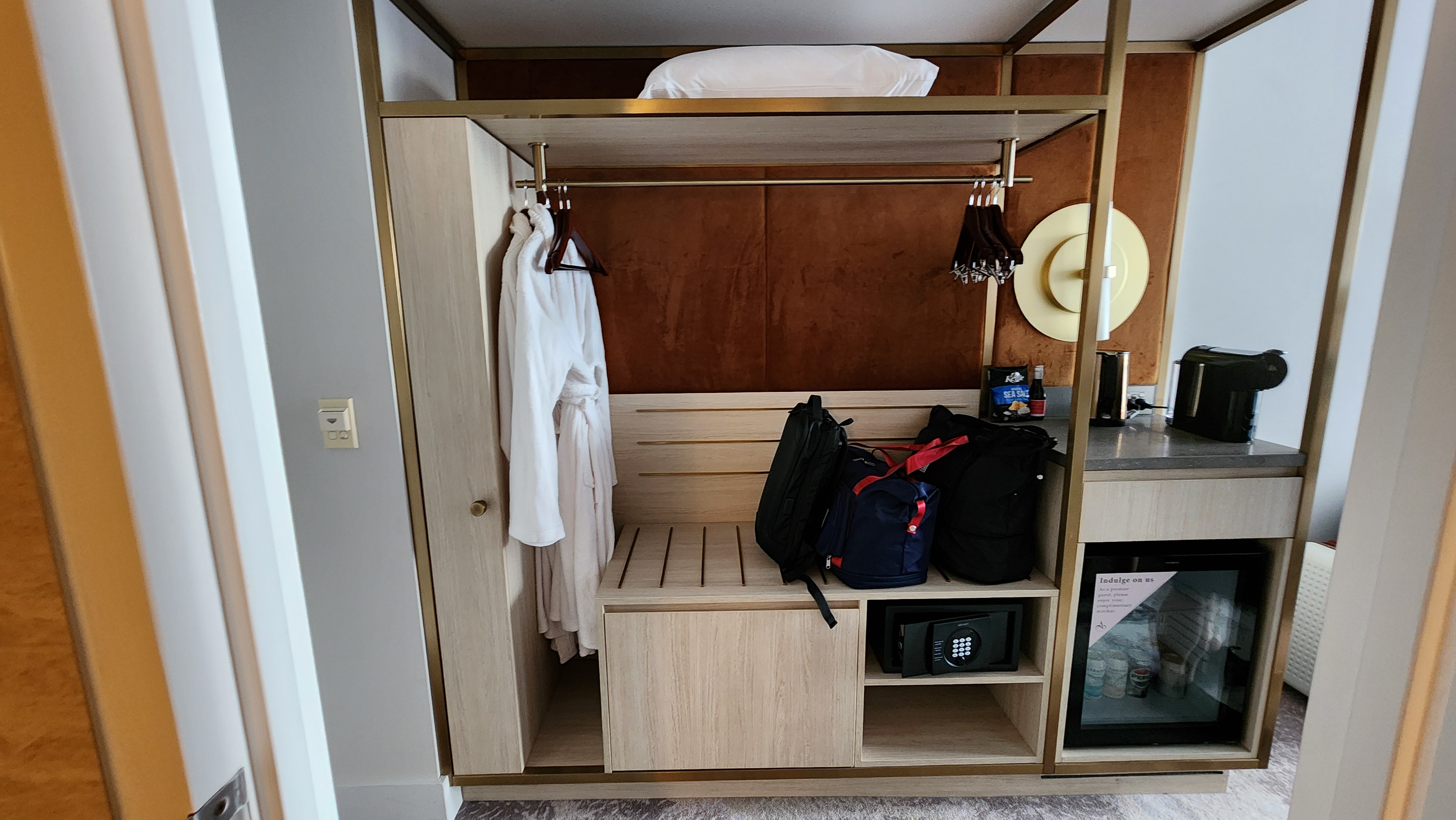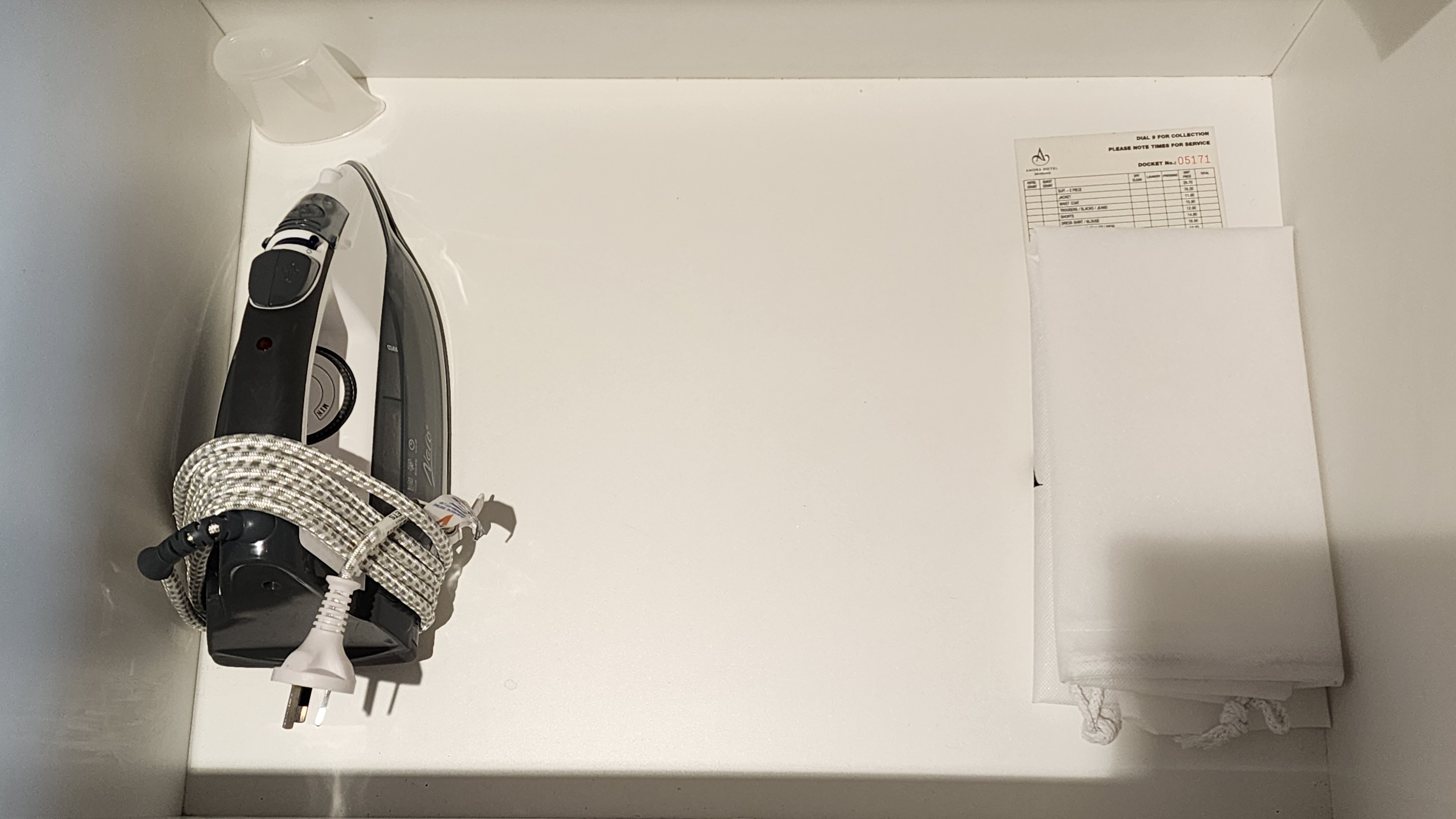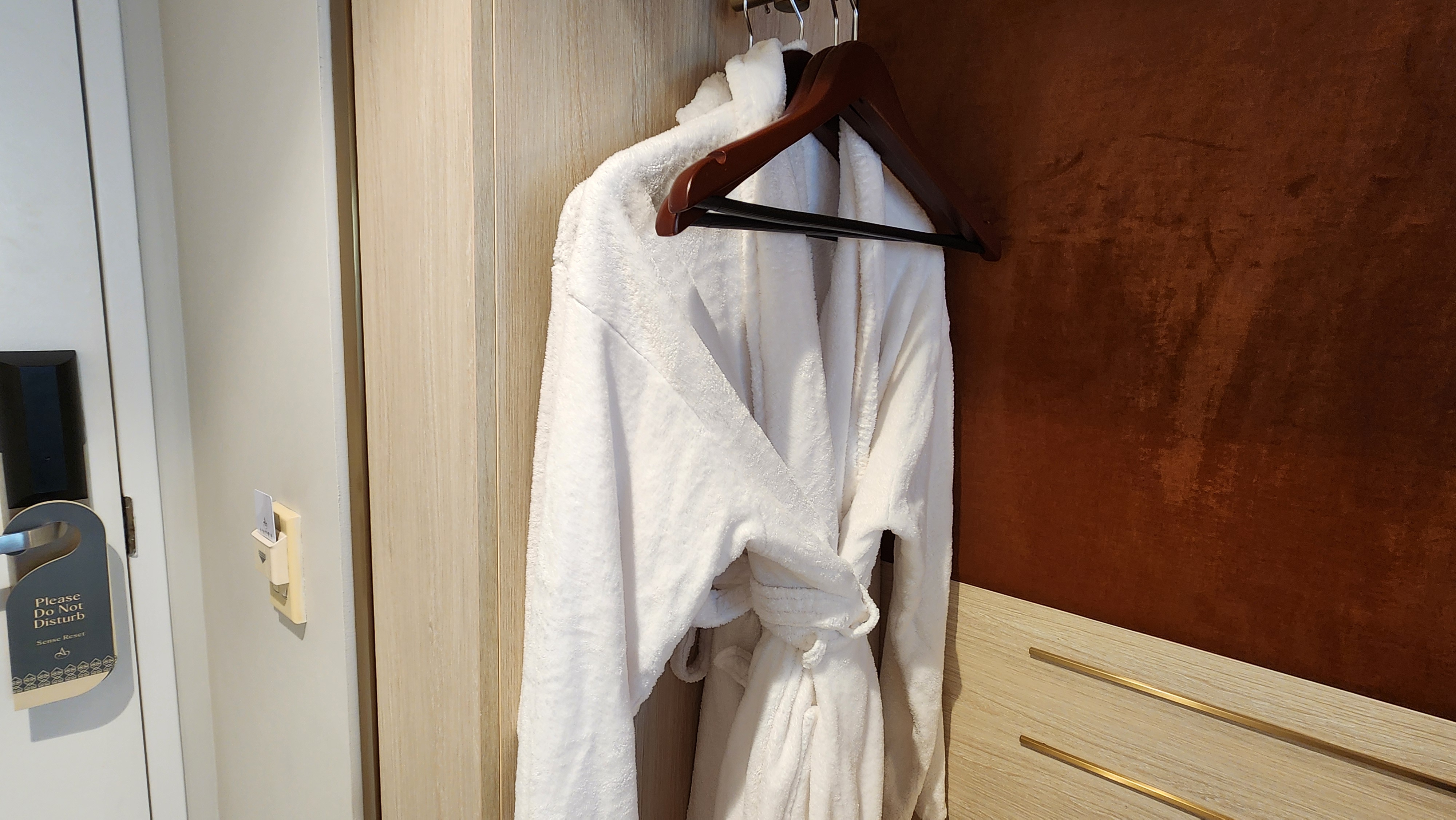 샤워가운, 다리미, 슬리퍼도 구비되어있었고, 금고도 있었어요.