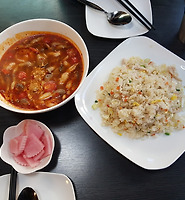 김치를 볶아서 그런가 맛있어 보이긴 한데 돈까스와는 그리 어울려 보이지 않네요.