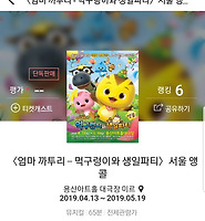 [ 어린이 뮤지컬 예매 ] 엄마까투리 먹구렁이와 생일파티 용산아트홀 대극장 미르홀 (0) | 2019.03.21 |