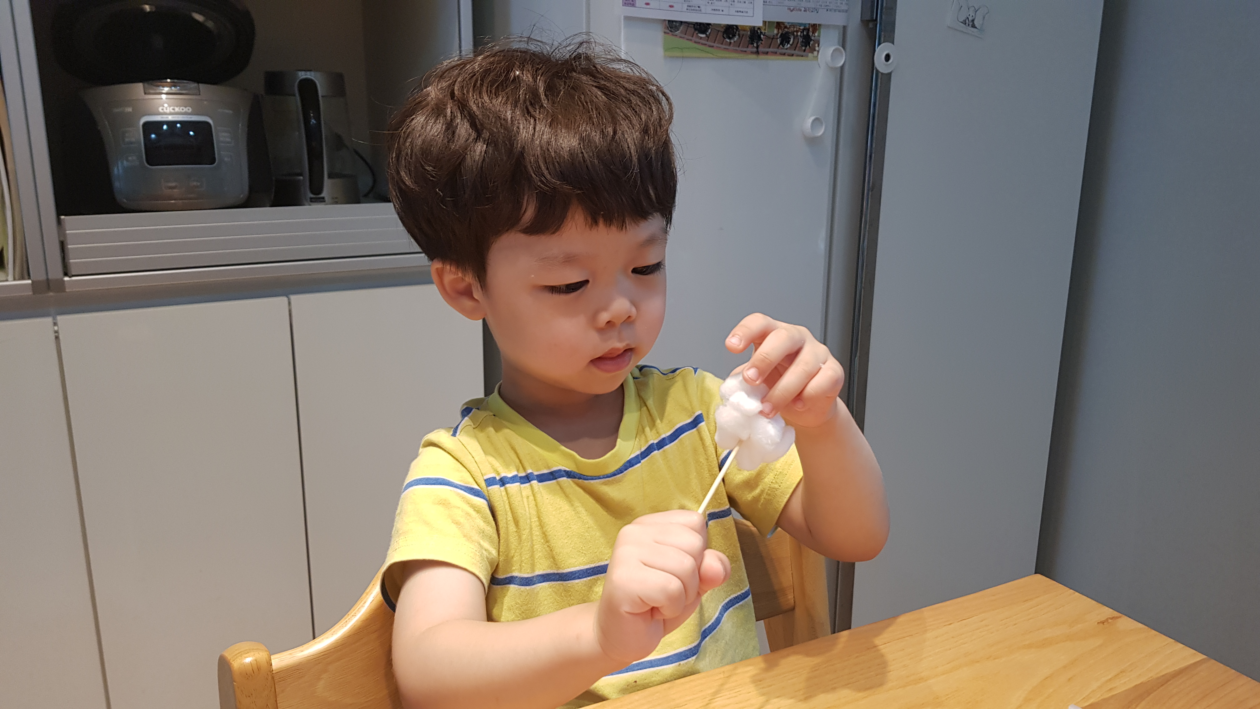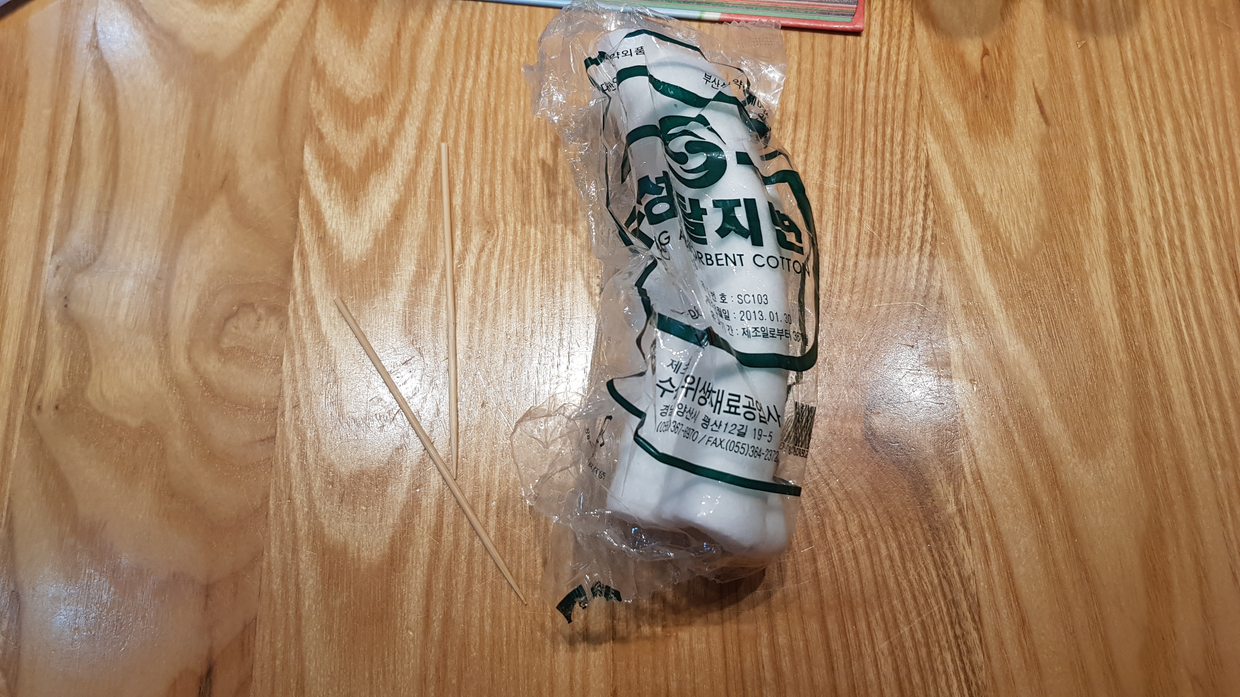 예전에 떡볶이 배달왔을 때 쟁여두었던 나무꼬치와 사용기한이 지나서 어찌 활용해볼까 하고 두었던 탈지면을 꺼냈어요.