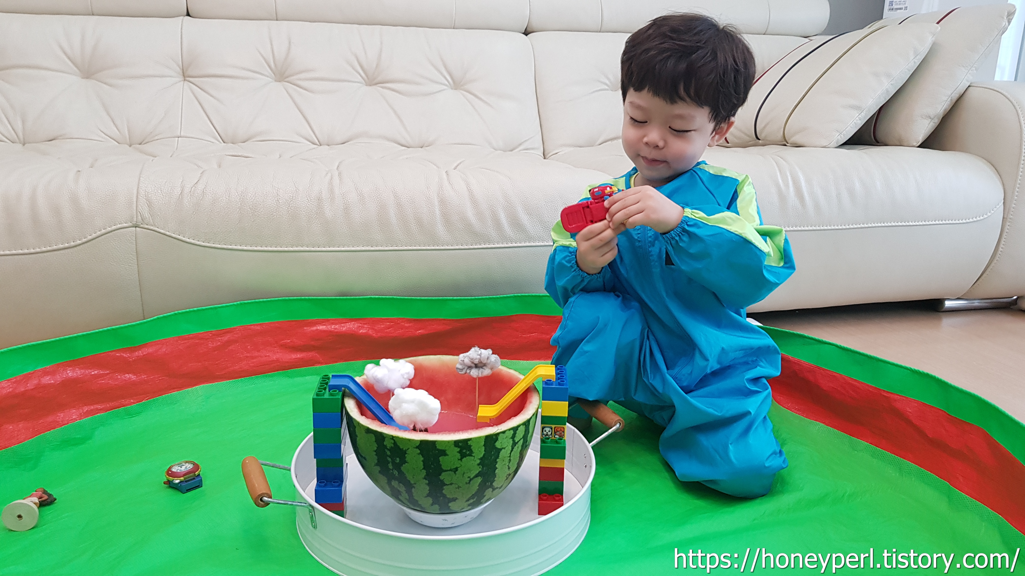 [ 아이와 함께하는 놀이 ] 수박을 이용한 오감놀이 - 수박수영장