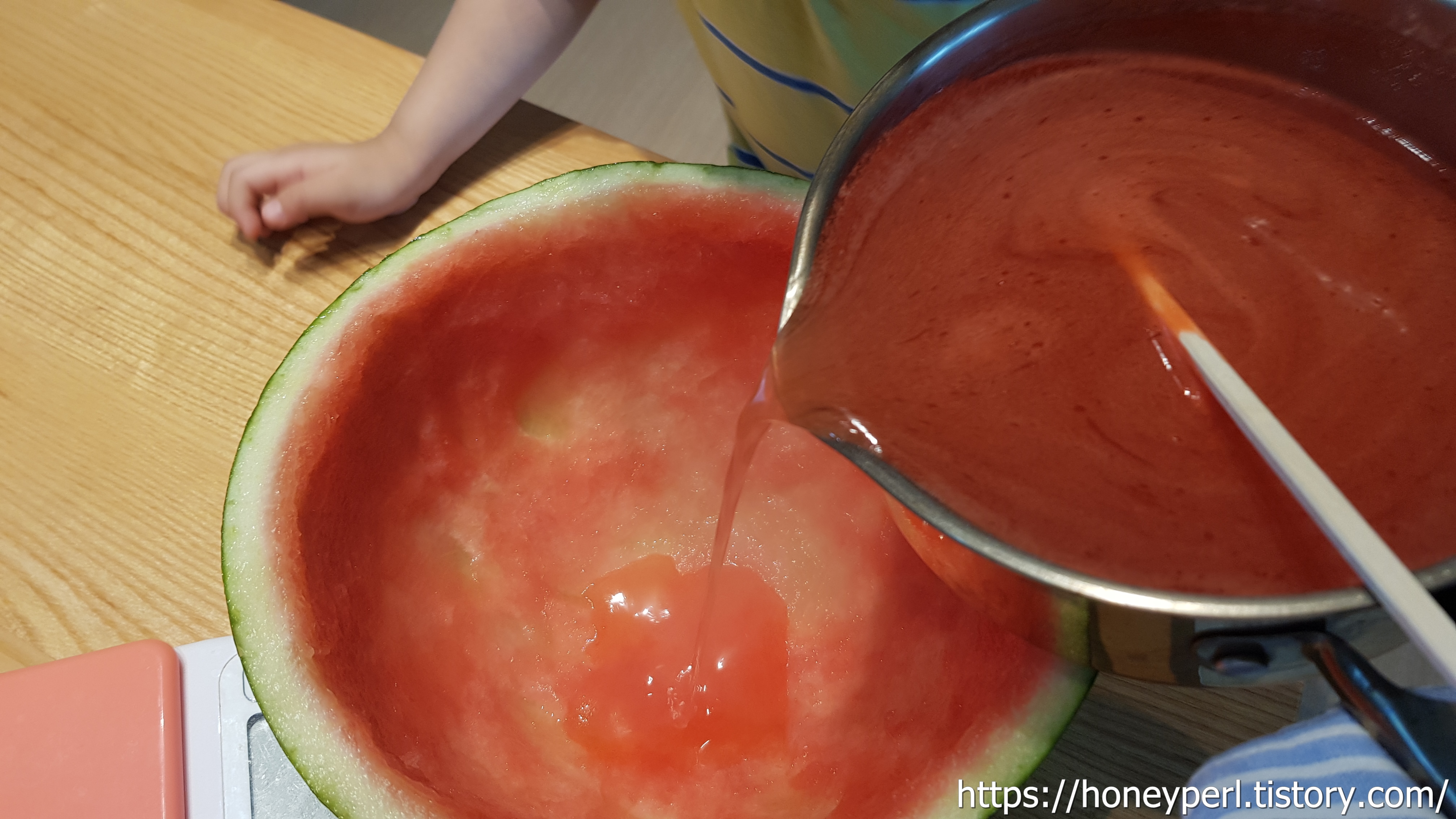 수박껍데기에 한천젤리물을 부어주시면 됩니다.