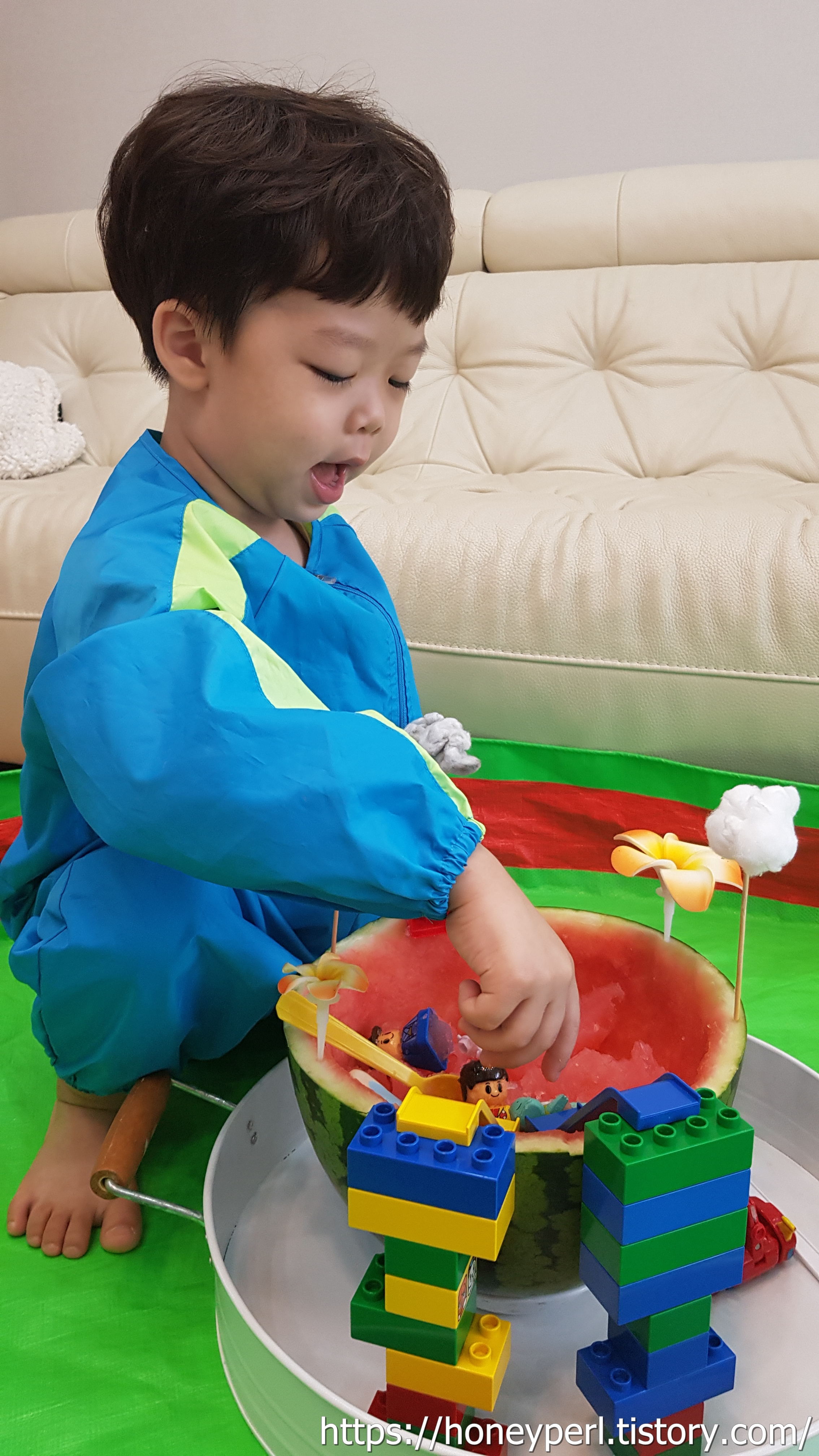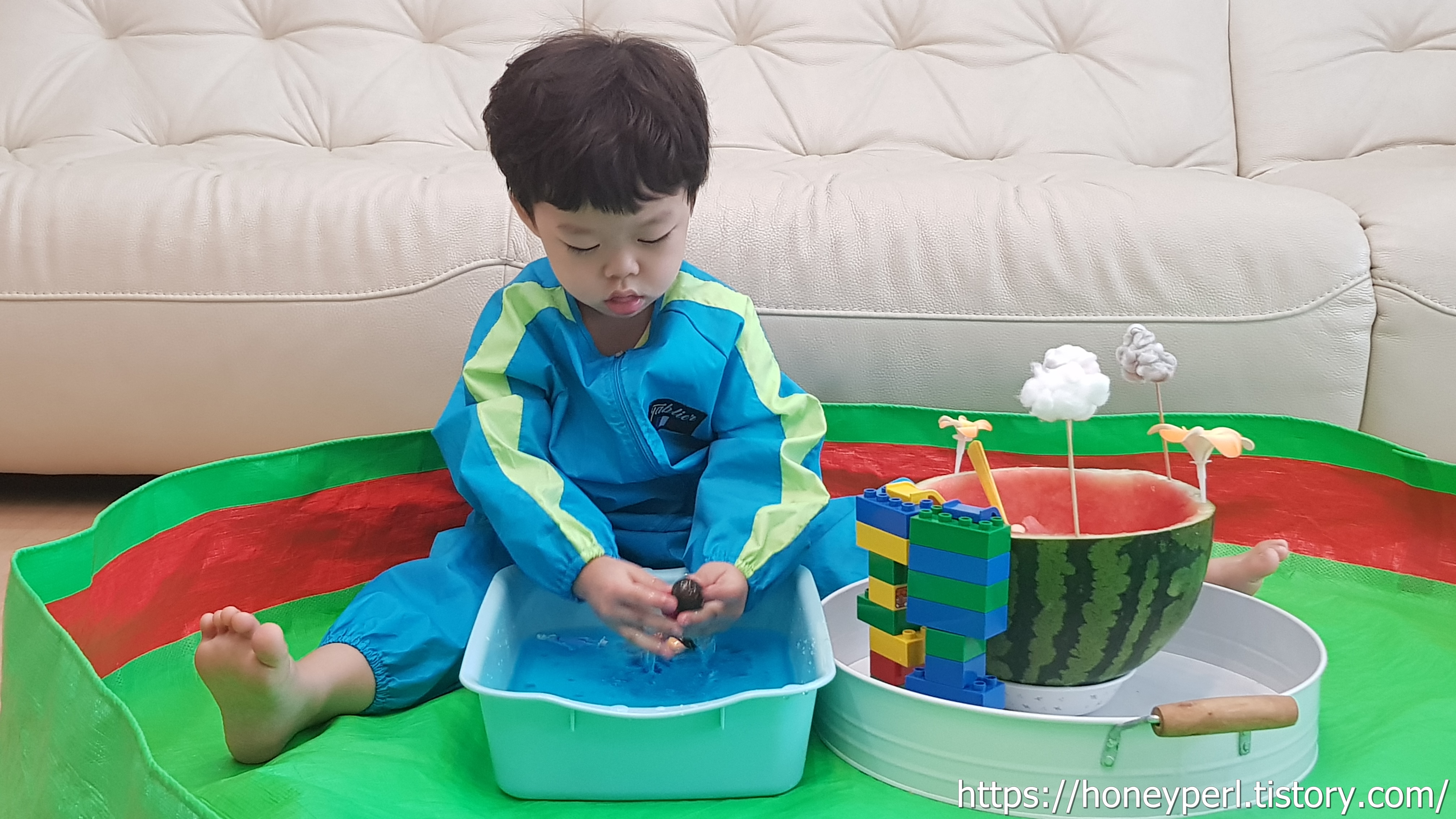 [ 아이와 함께하는 놀이 ] 수박을 이용한 오감놀이 - 수박수영장
