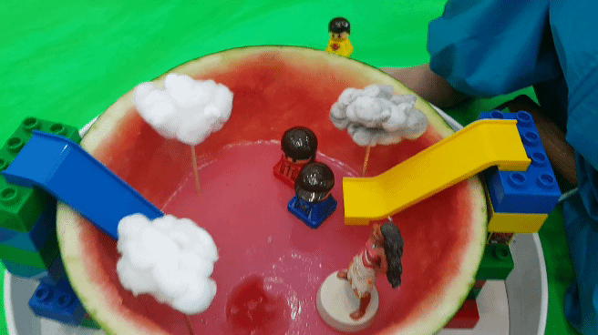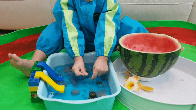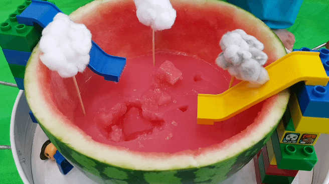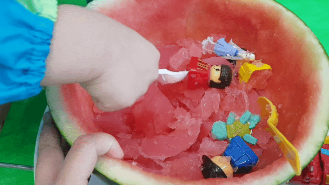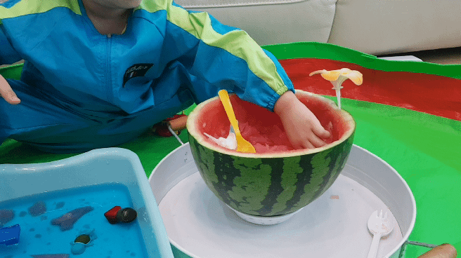 수박수영장이 젤리로 만들어져서 친구들이 신나게 놀지 못하는 느낌이라고 해서 놀이 방법을 바꿔보기로 했어요.