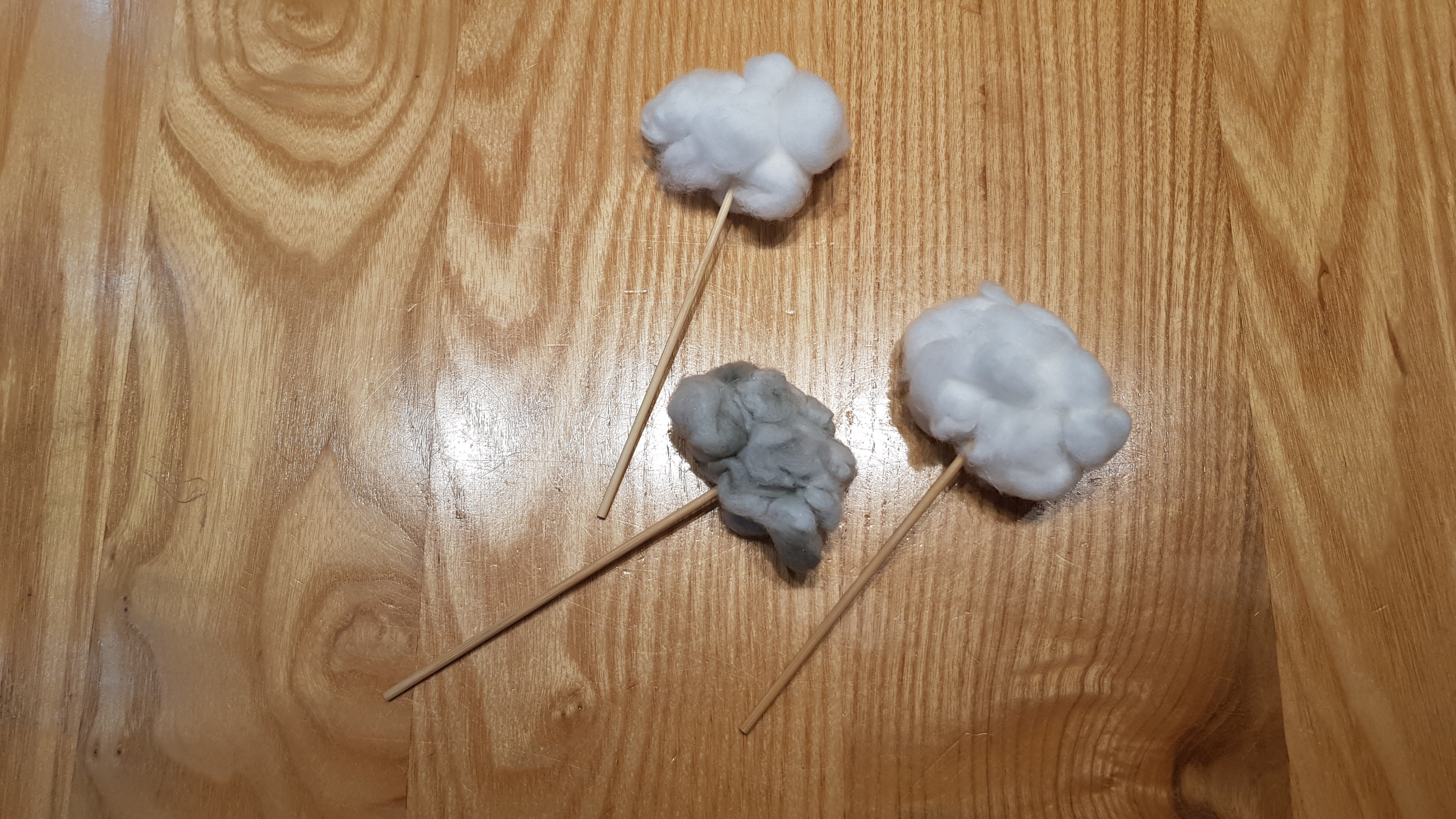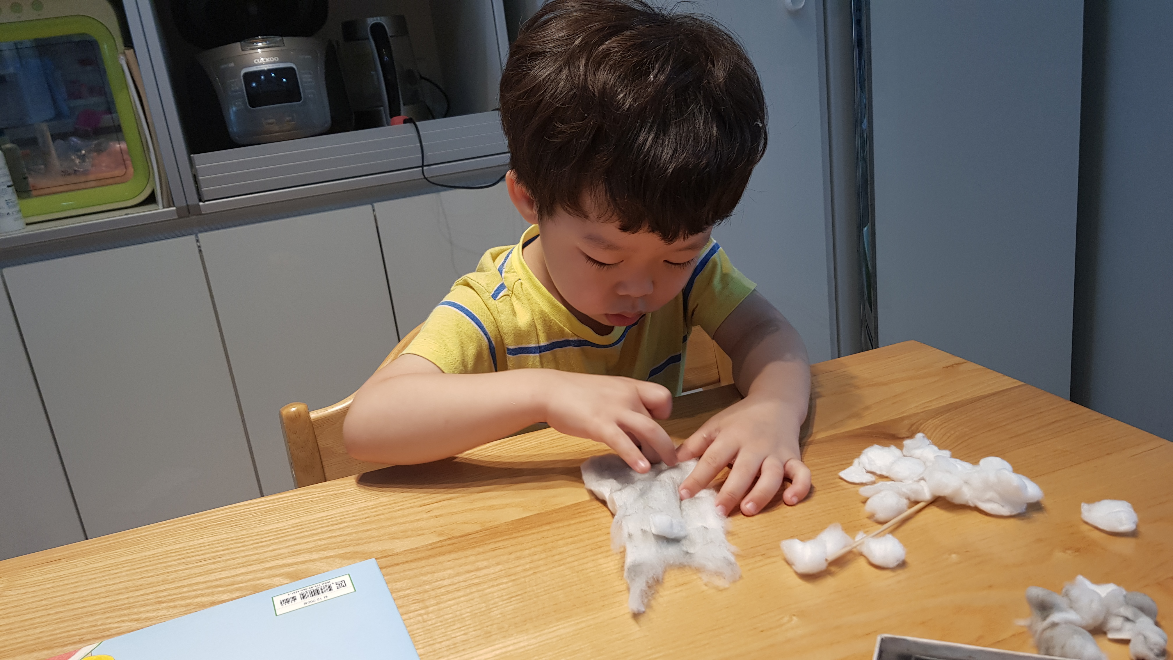 구름의 느낌을 살려주고 싶어서 탈지면을 조금씩 뜯어 동글동글하게 만들어 두고