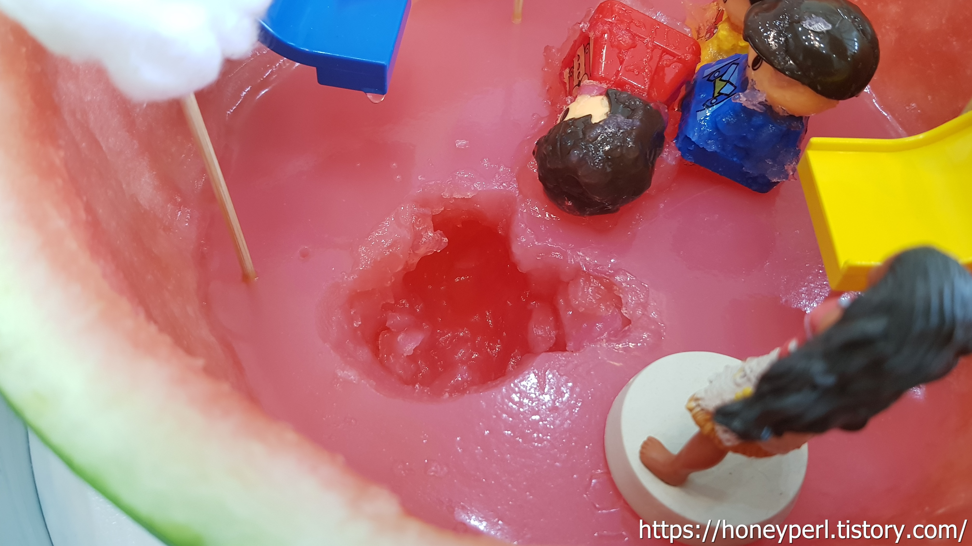 수박껍데기에 한천젤리물을 부어주시면 됩니다.