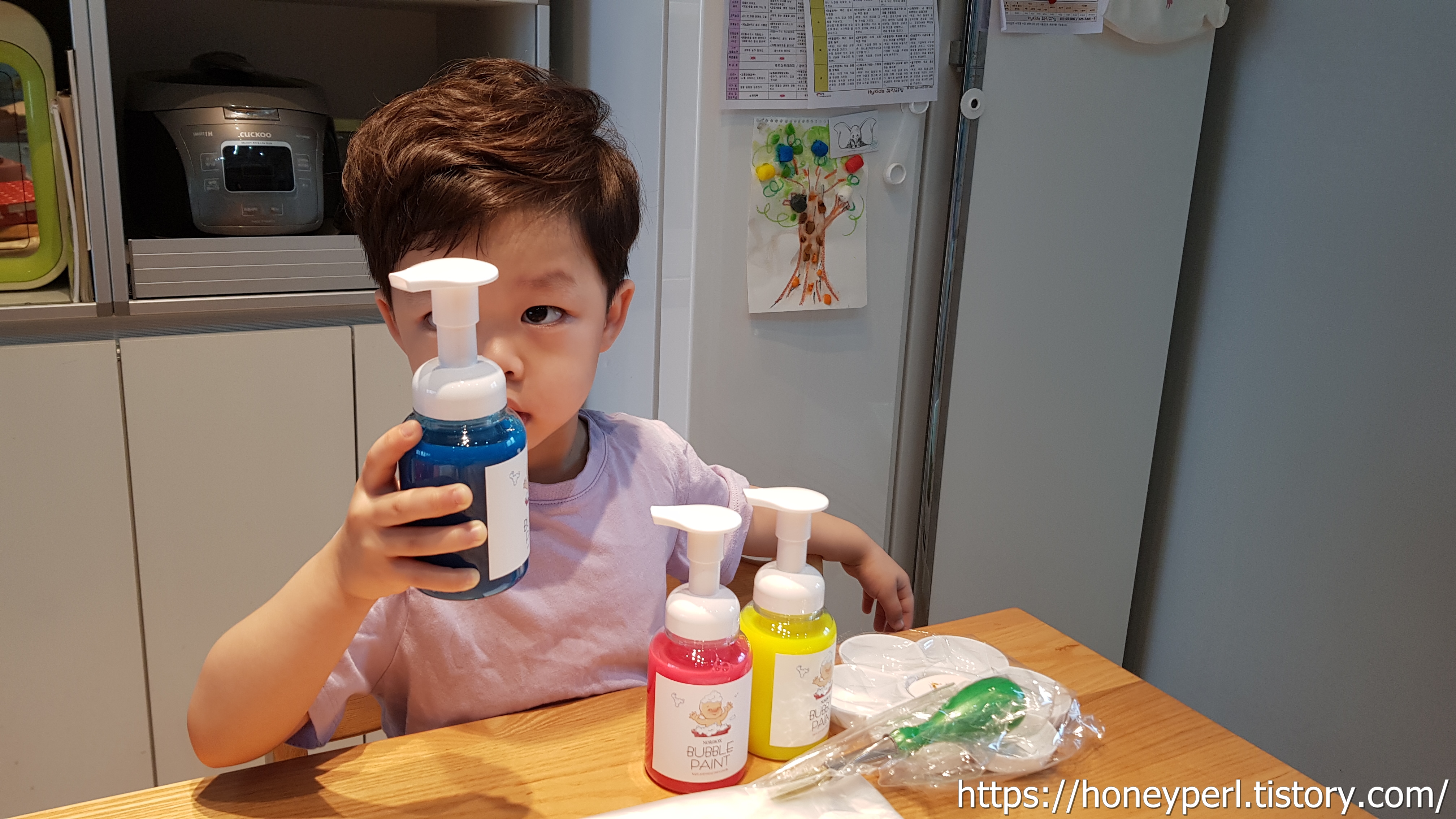 쨍한 색감을 자랑하는 버블물감이 담겨있는 병도 너무너무 귀여웠어요.