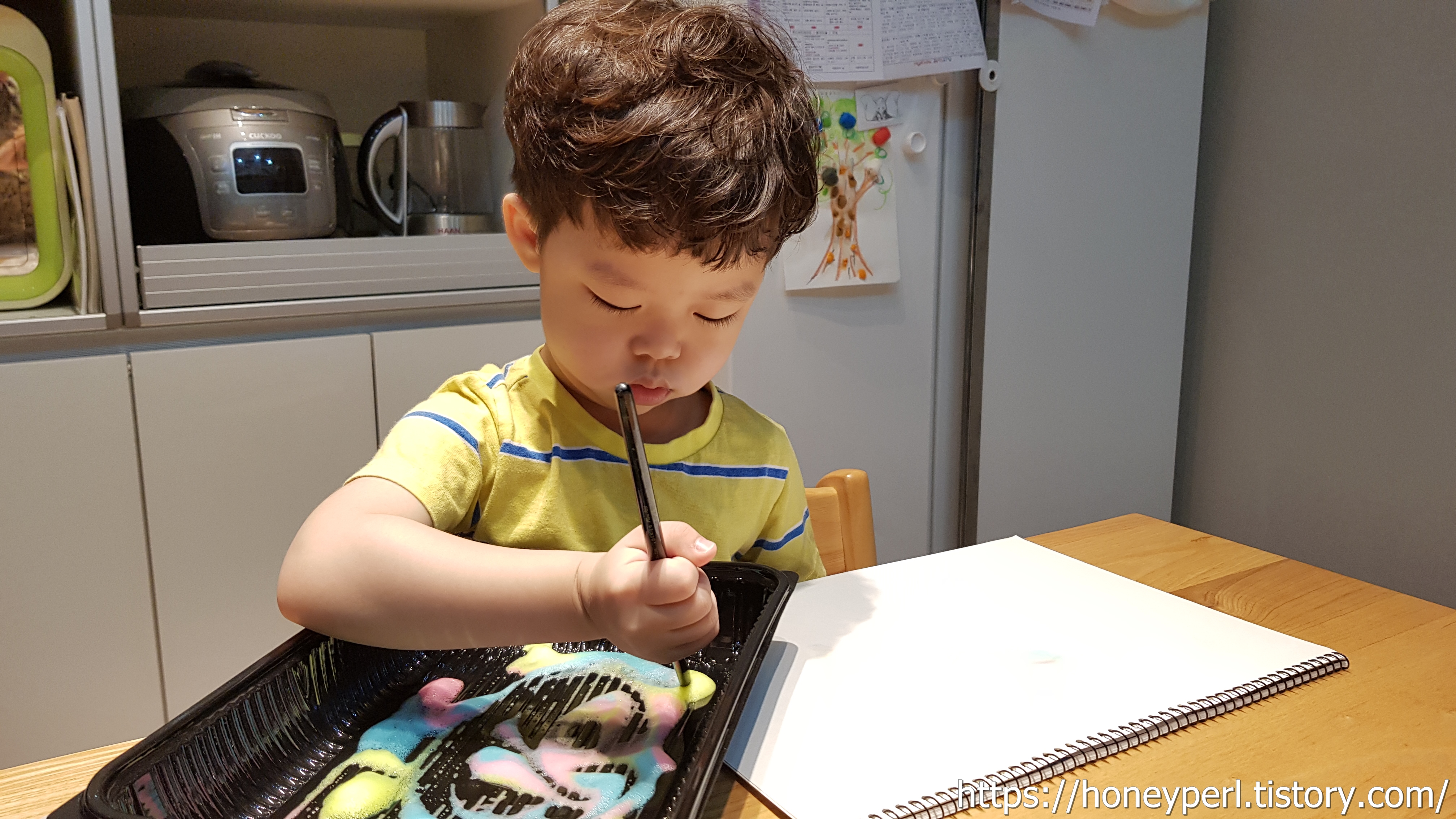 엄마표놀이 하시는 분들이 많이들 사용하셔서 궁금했는데 확실히 그립감도 좋고 아이가 사용하기 좋은 붓털 느낌이었어요.