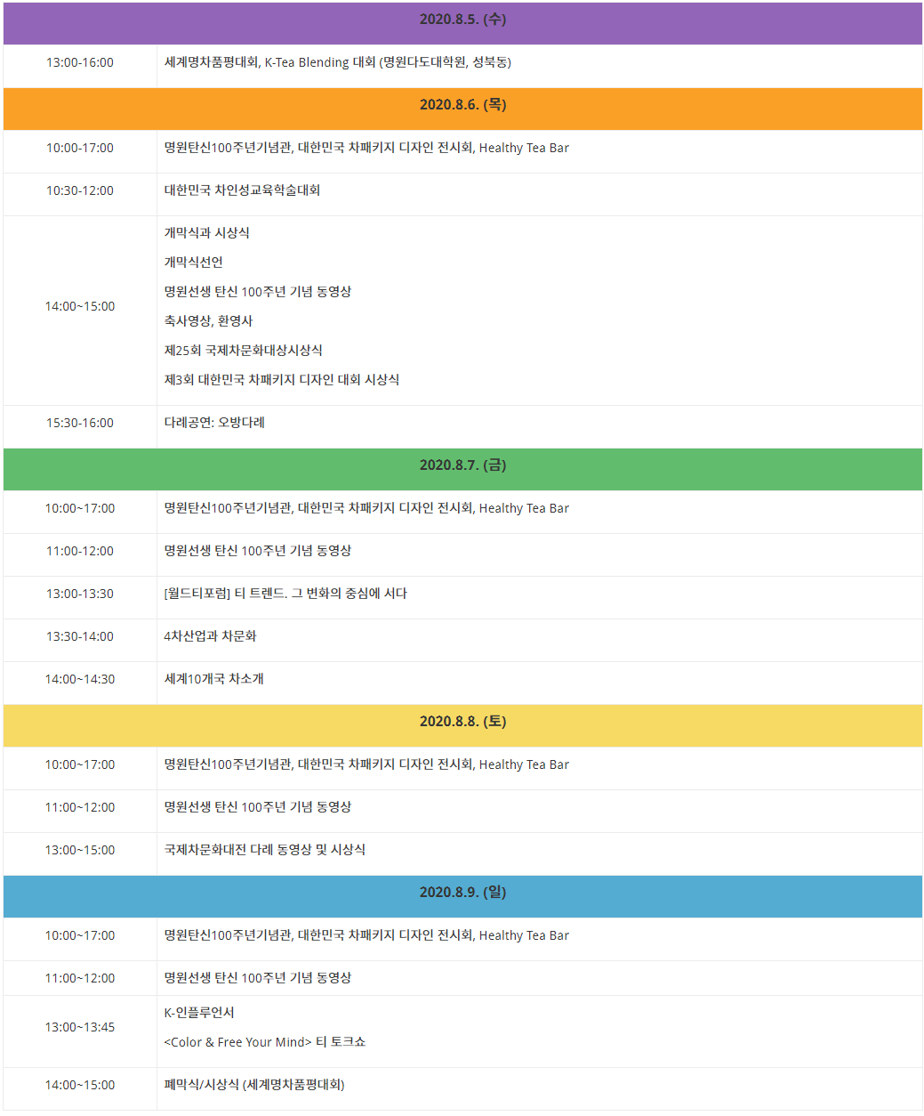 | [ 박람회 소개 ] 2020 명원 세계 차박람회 기획전 및 부대행사 소개 (2) | 2020.07.21 |