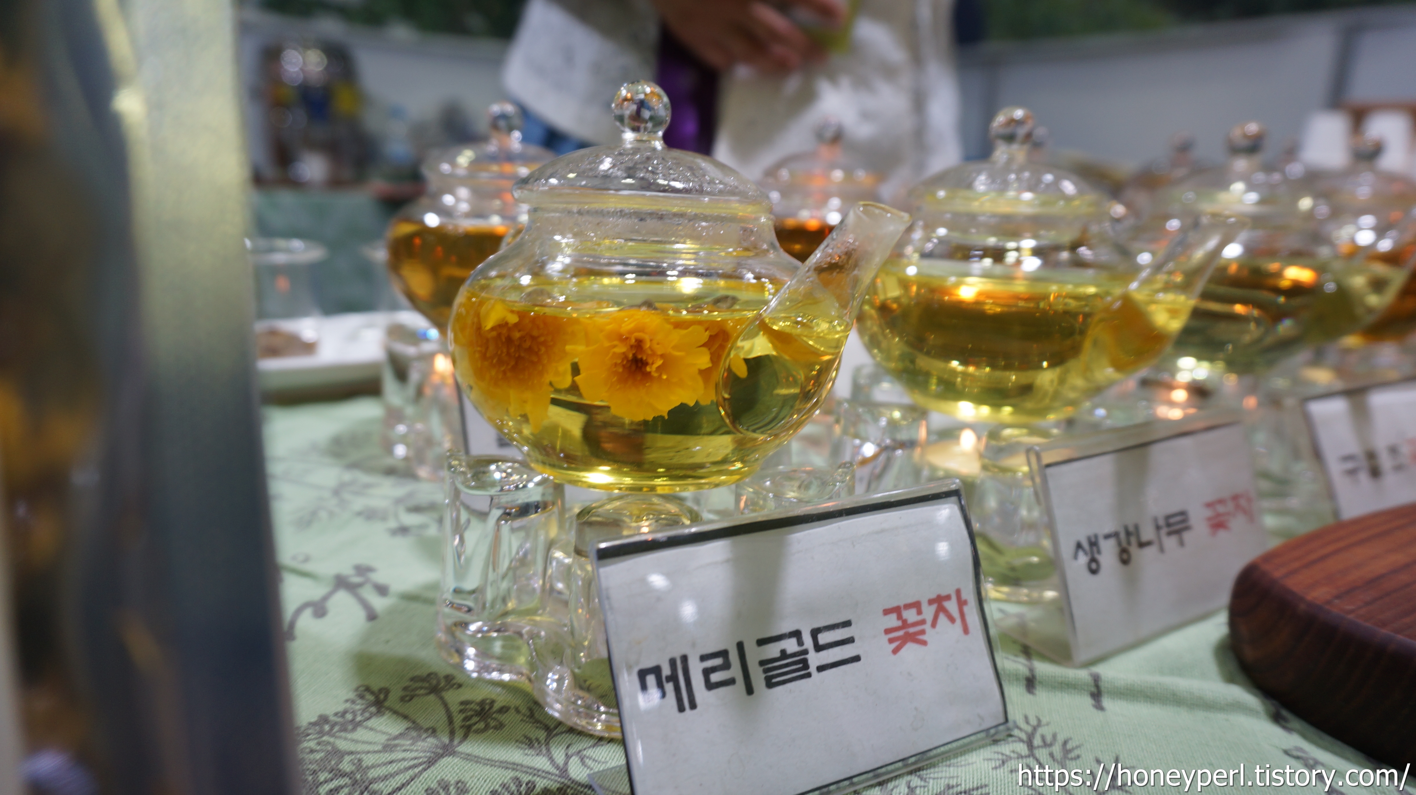 박람회장에서 시음을 해볼 수 없었던 아쉬운 마음은 집에서 꽃차를 우리며 달래보았어요.