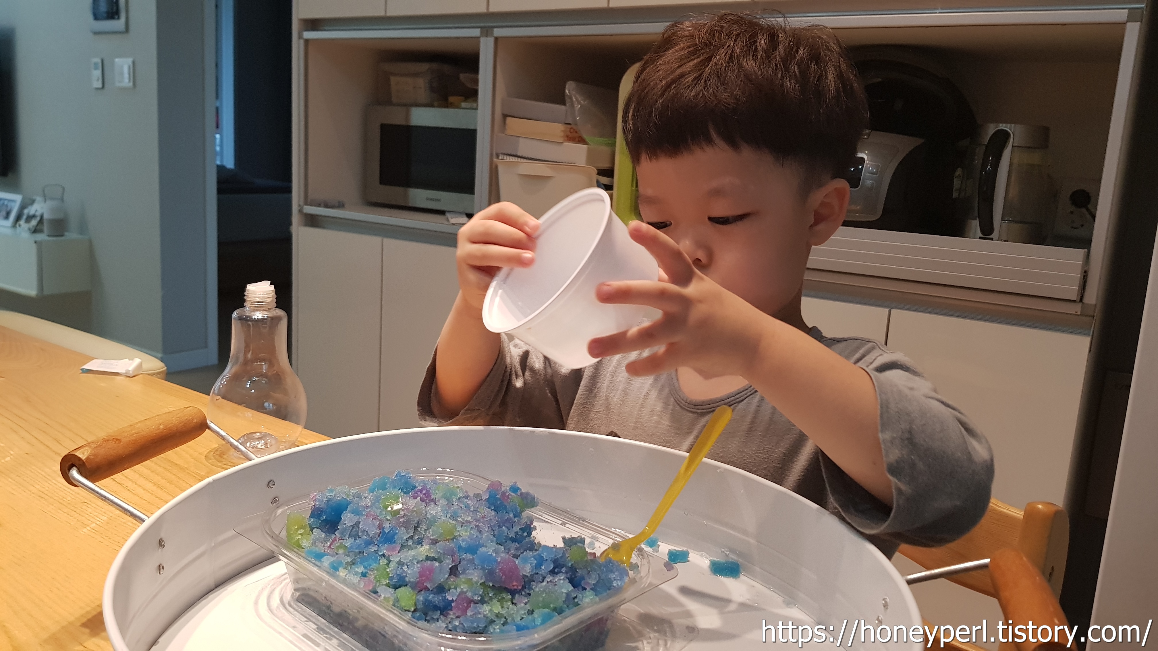 한천가루 한 봉다리 사다가 동글이와 이렇게도 놀아보고 저렇게도 놀아보고 있는데요, 다들 잘 놀고나서 마무리는 어떻게들 하고 계신지 궁금하네요.