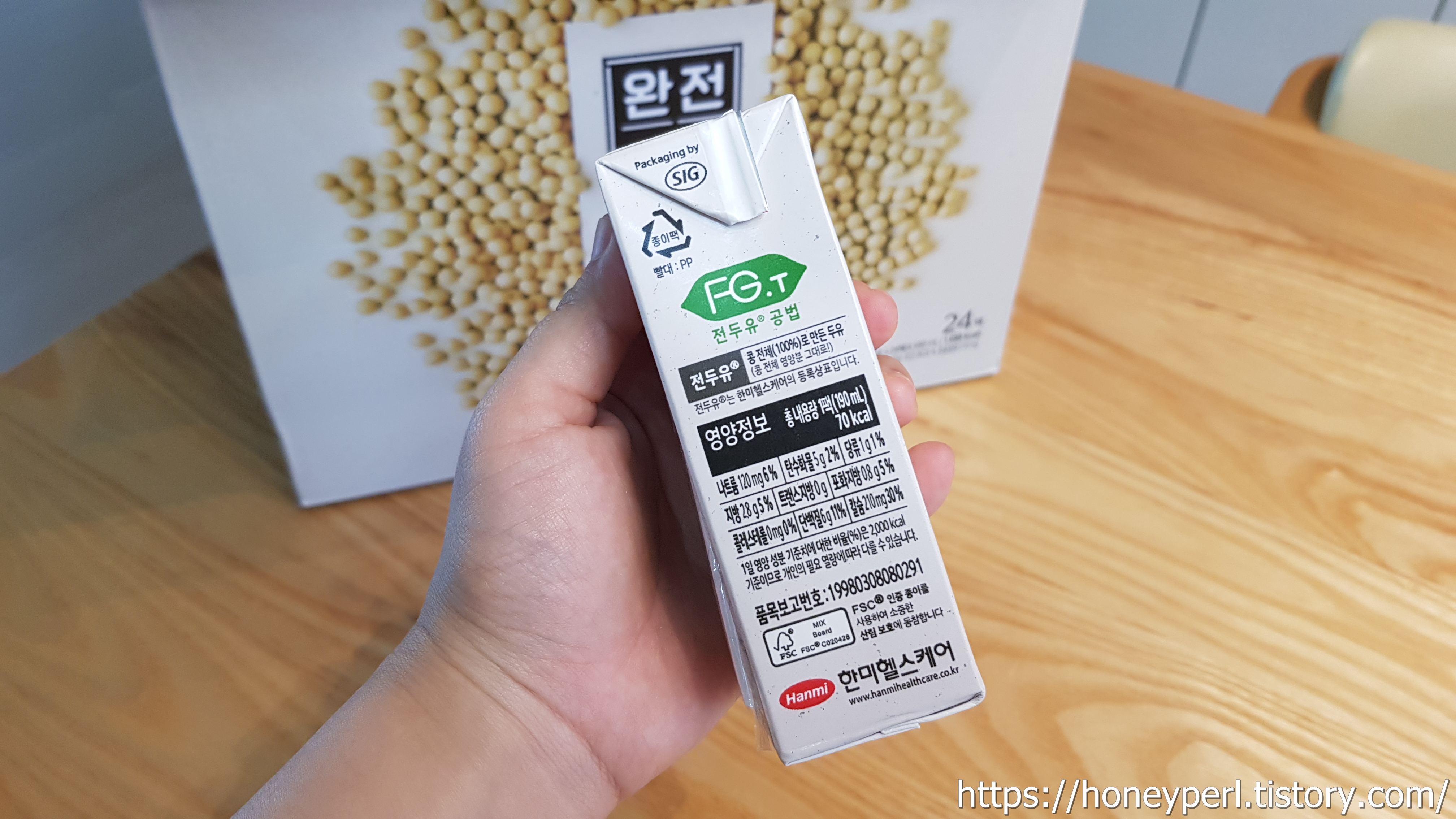 두유는 제품패키지가 좀 촌스러운 것들도 더러 보이던데 한미 완전두유 퓨어 패키지는 깔끔깔끔한 느낌이었어요.