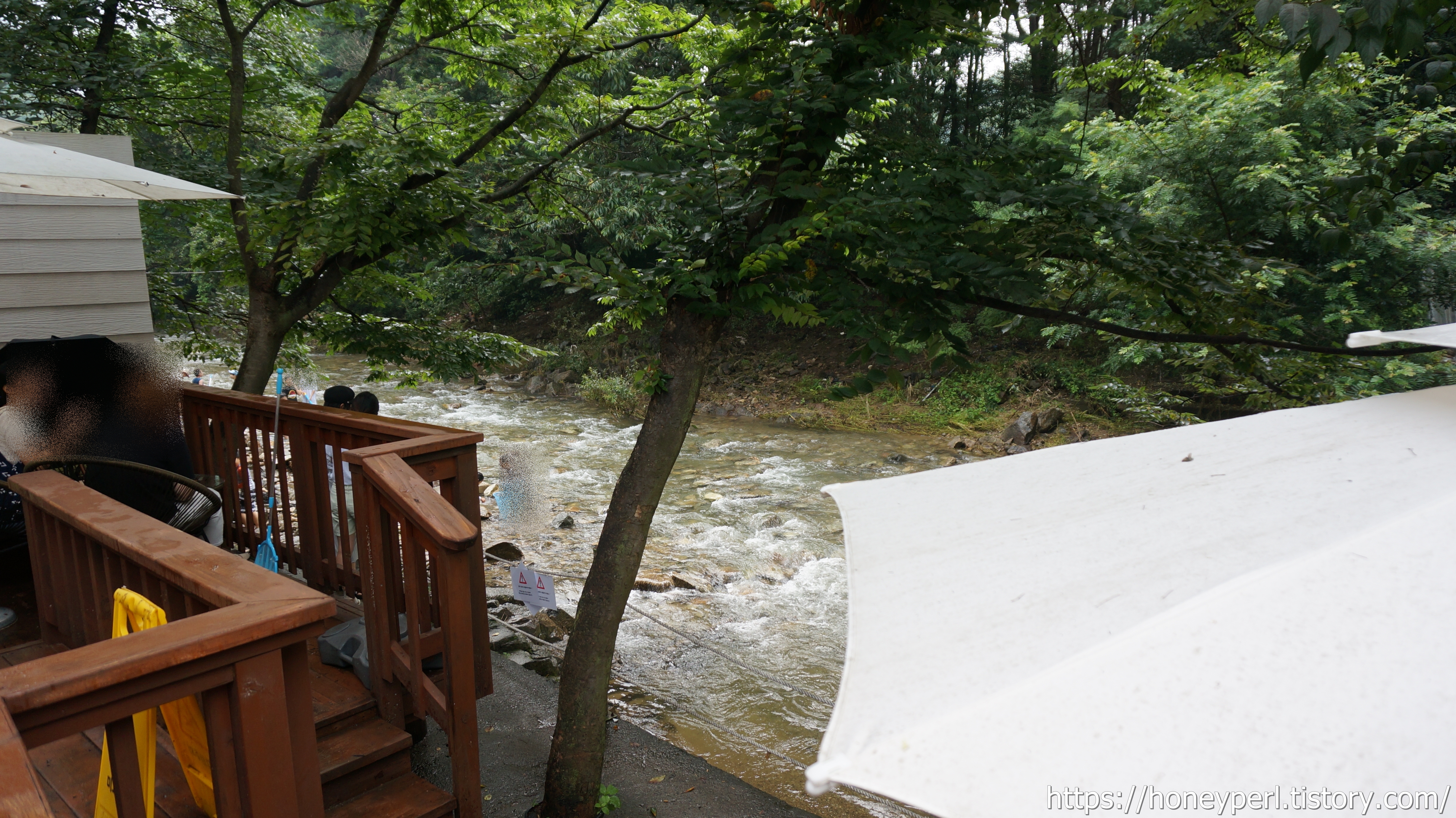계곡을 끼고 있는 카페다보니 물놀이 후 먹을 수 있도록 떡볶이나 치킨을 메뉴에 넣은게 다른점이랄까요.