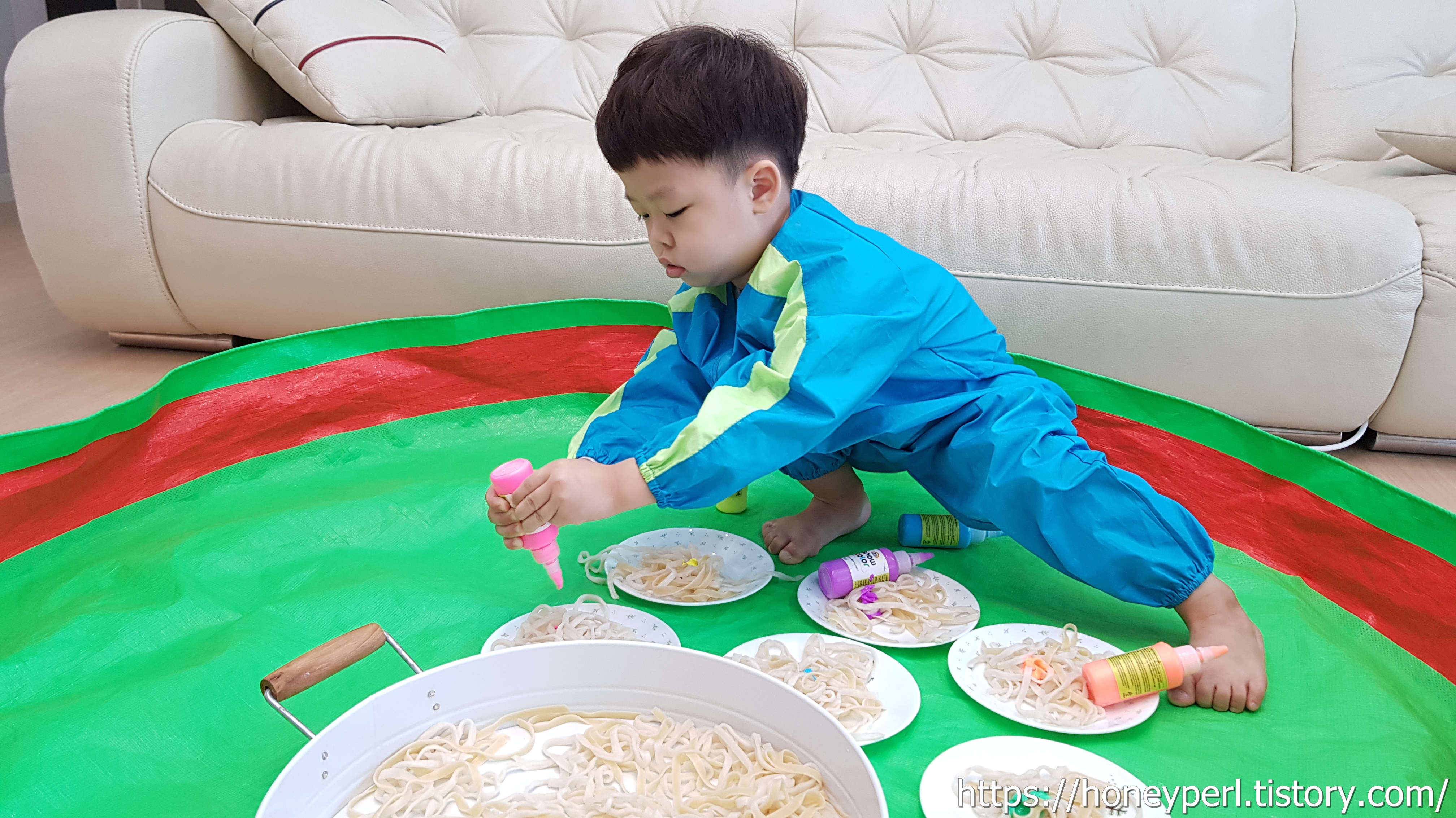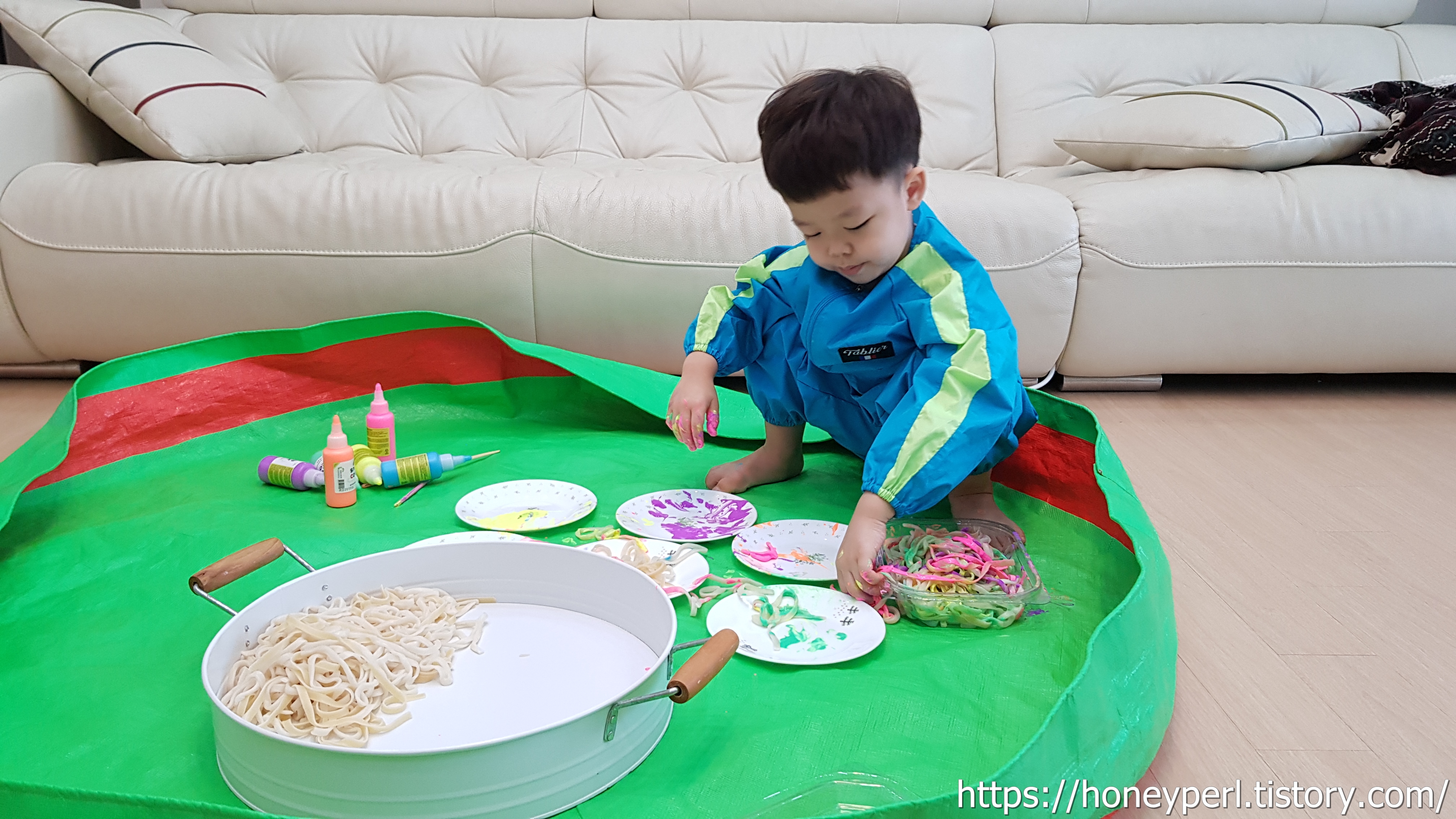 그래서 오늘은 아이랑 뭐하고 놀아줄까 고민하시는 분들이 보시고 참고하시면 좋을 것 같아 집에 있는 먹거리 재료인 면을 가지고 오감놀이 해보았던 내용을 포스팅 하려고 해요.